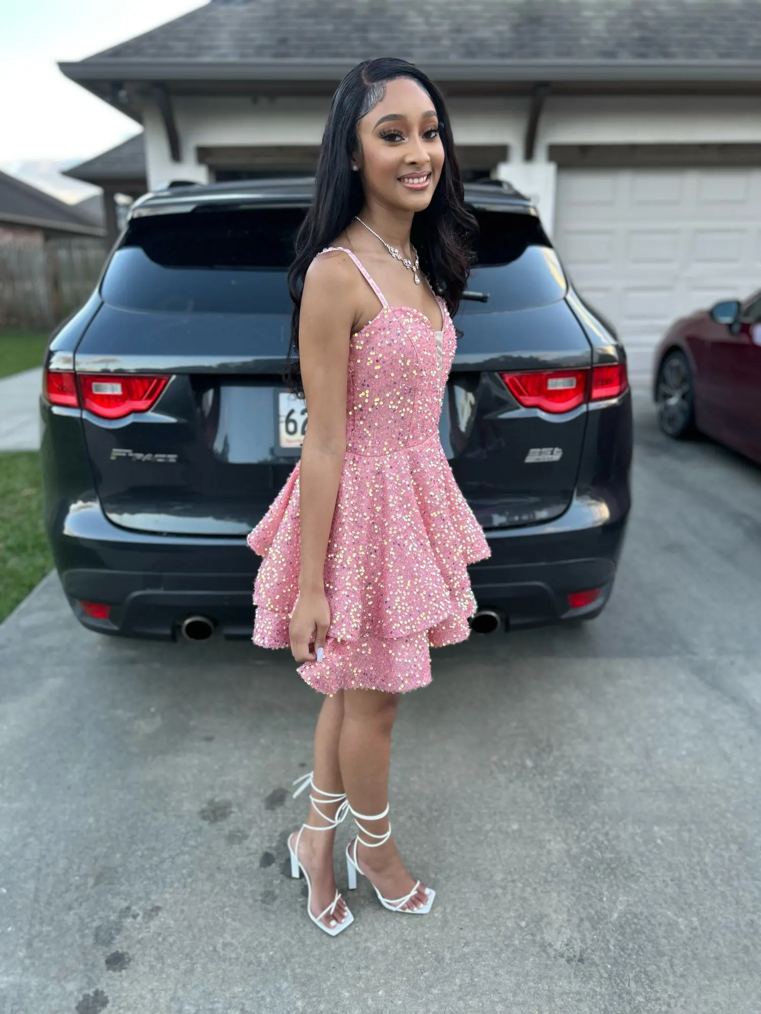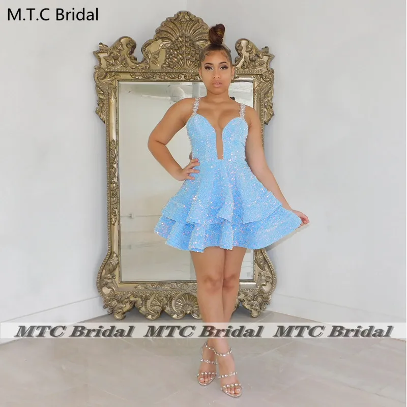 Блестящие короткие светильник-голубые платья для выпускного вечера милое Многоярусное ТРАПЕЦИЕВИДНОЕ мини сексуальное черное платье для вечеринки для выпускного вечера для девушек