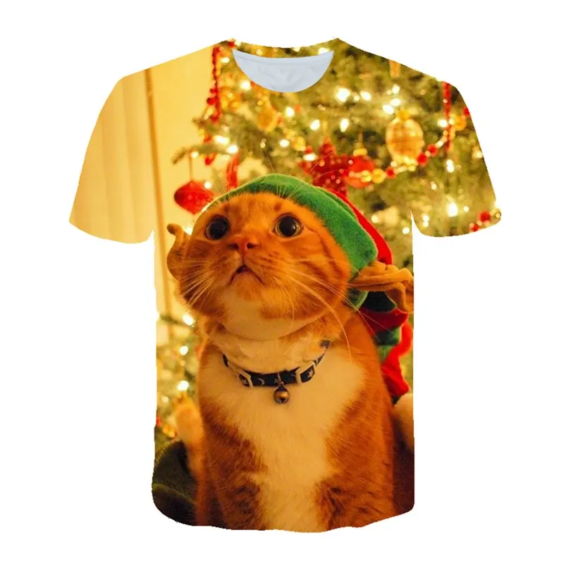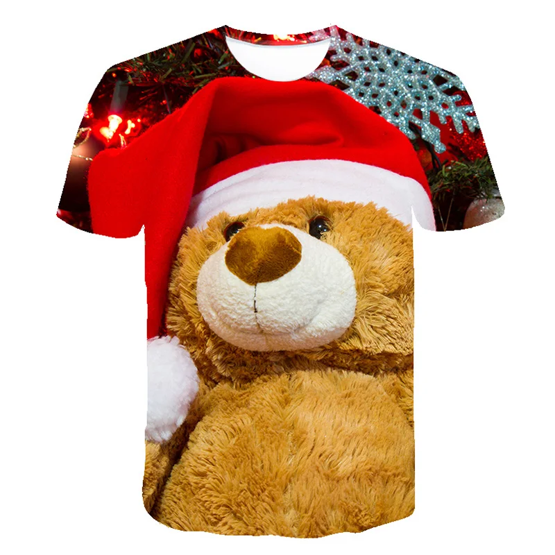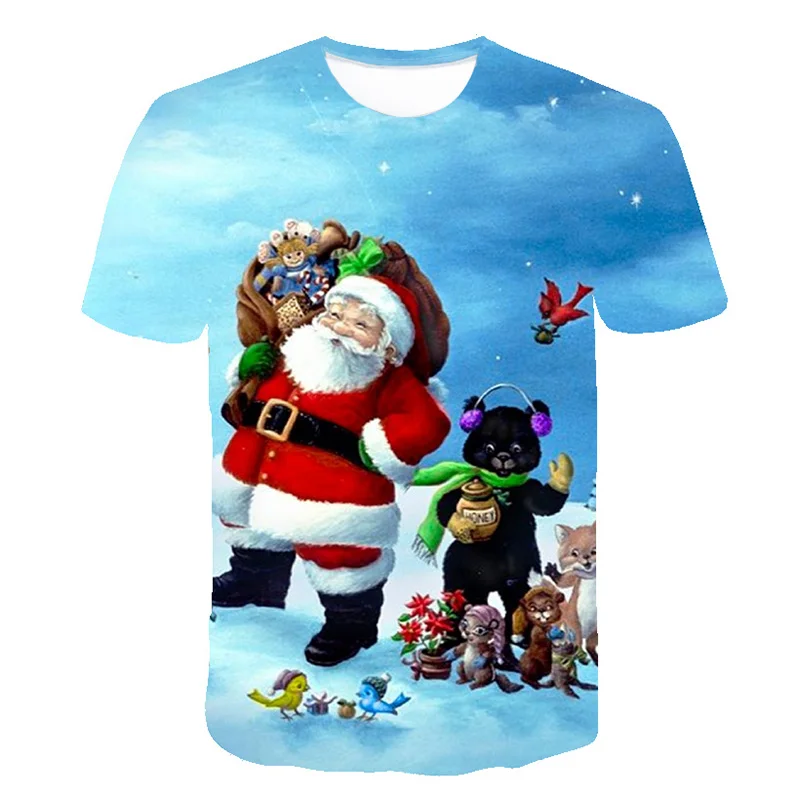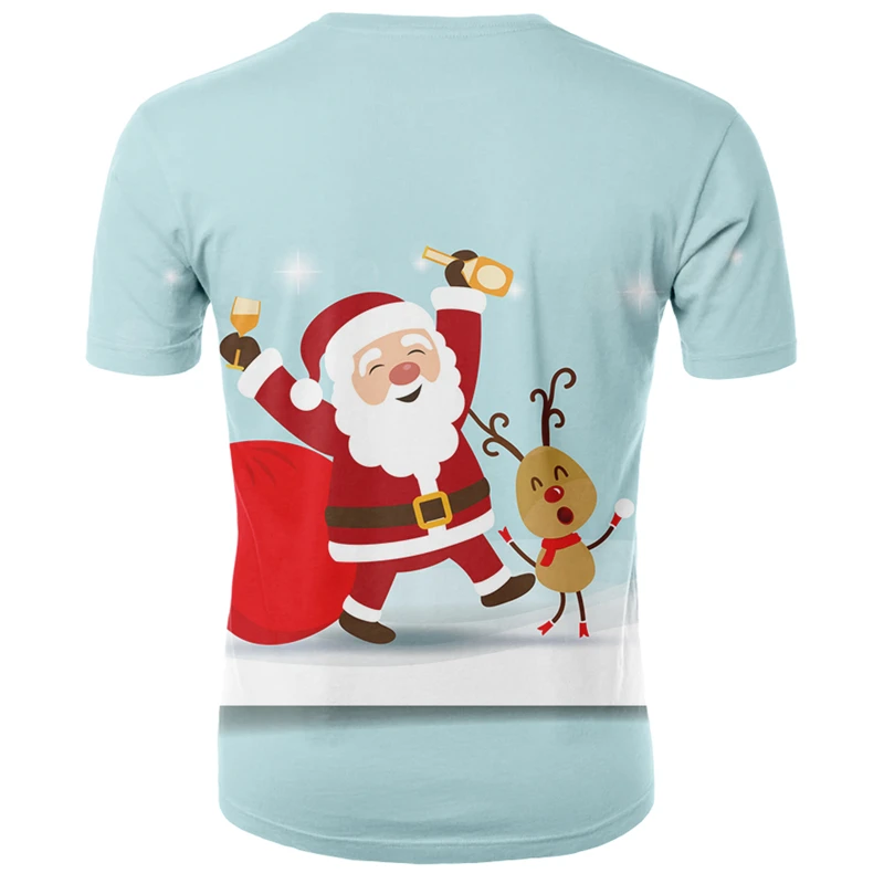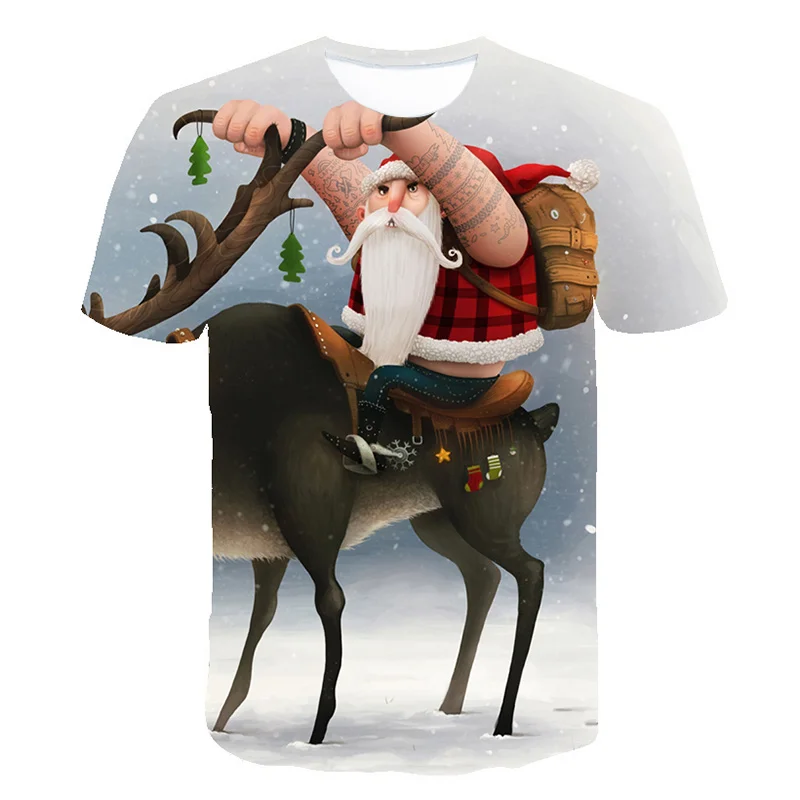 Мужская футболка с 3D-принтом Санта-Клауса, круглым вырезом