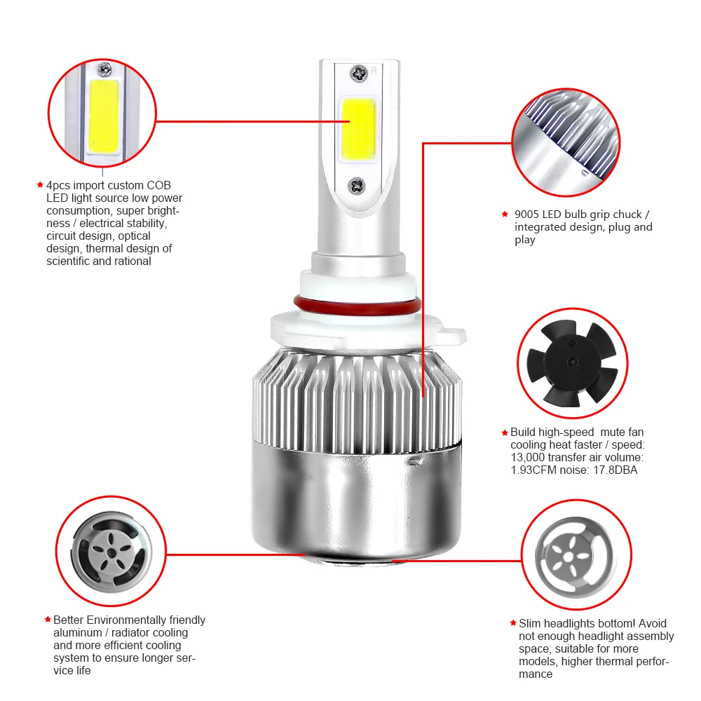 2 шт., Автомобильные светодиодные лампы C6 H7 H4 H13 H11 H1 9005 90...
