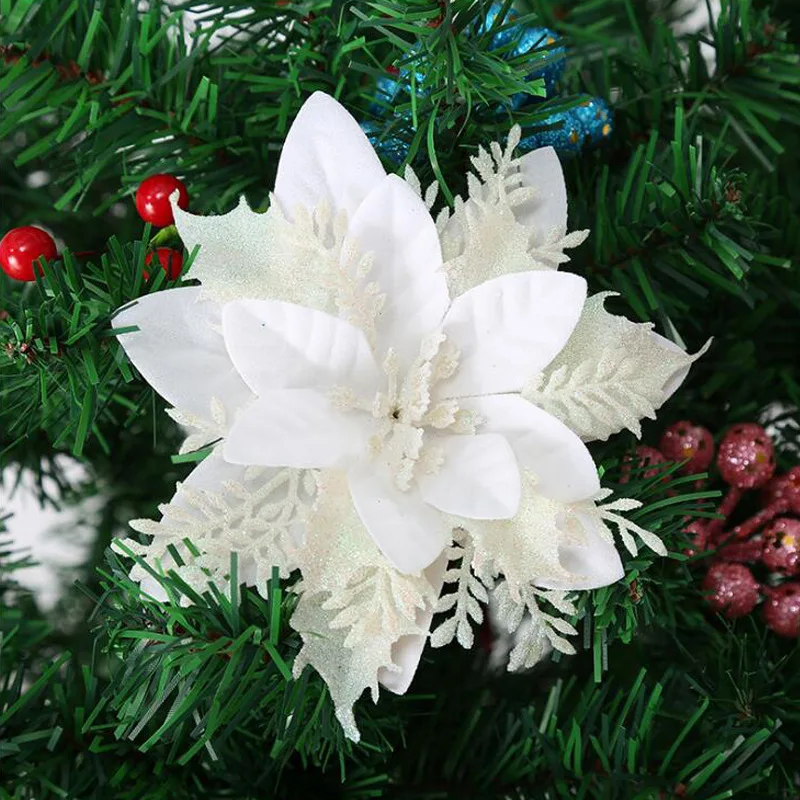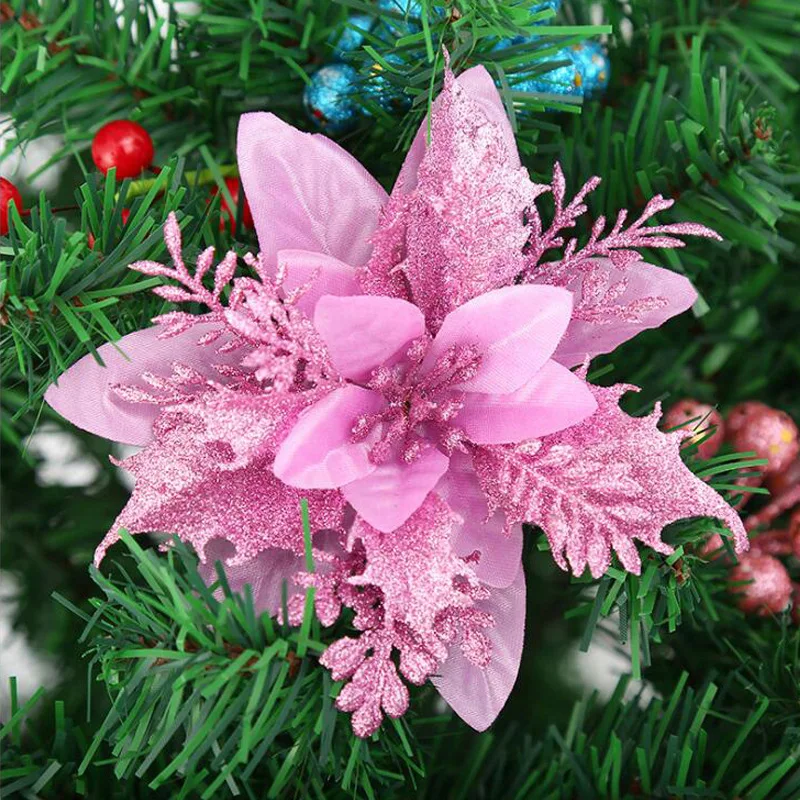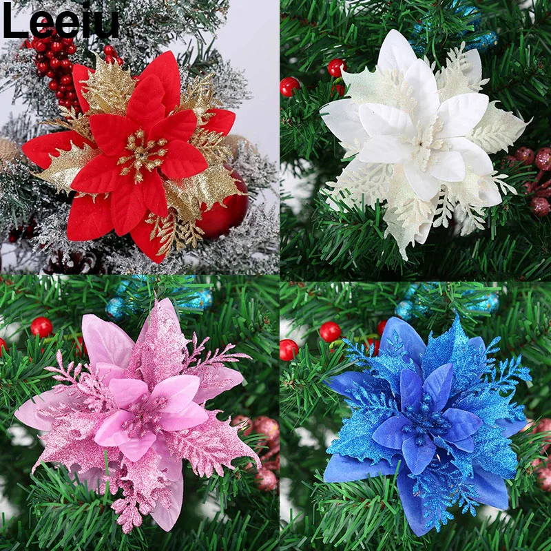 Leeiu 6 шт., украшения для рождественской елки, блестящие фотообои для украшения дома, рождественские искусственные цветы, новый год