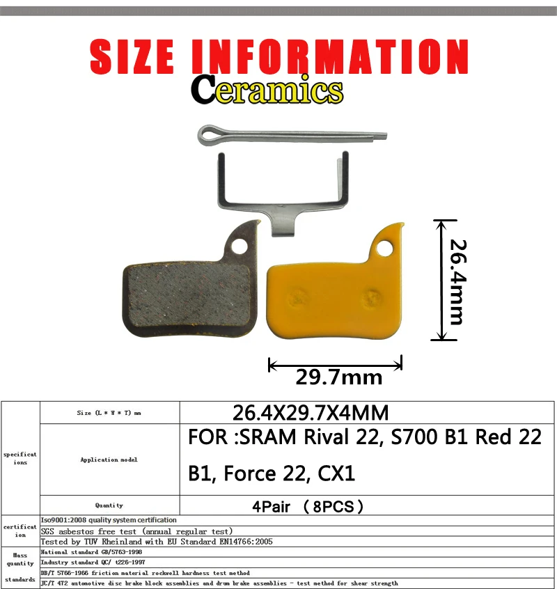 4 пары (8 шт.) керамических тормозных колодок для горного велосипеда, тормозные колодки для SRAM AVID Rival 22 S700 B1 Red 22 Force 22 CX, аксессуары
