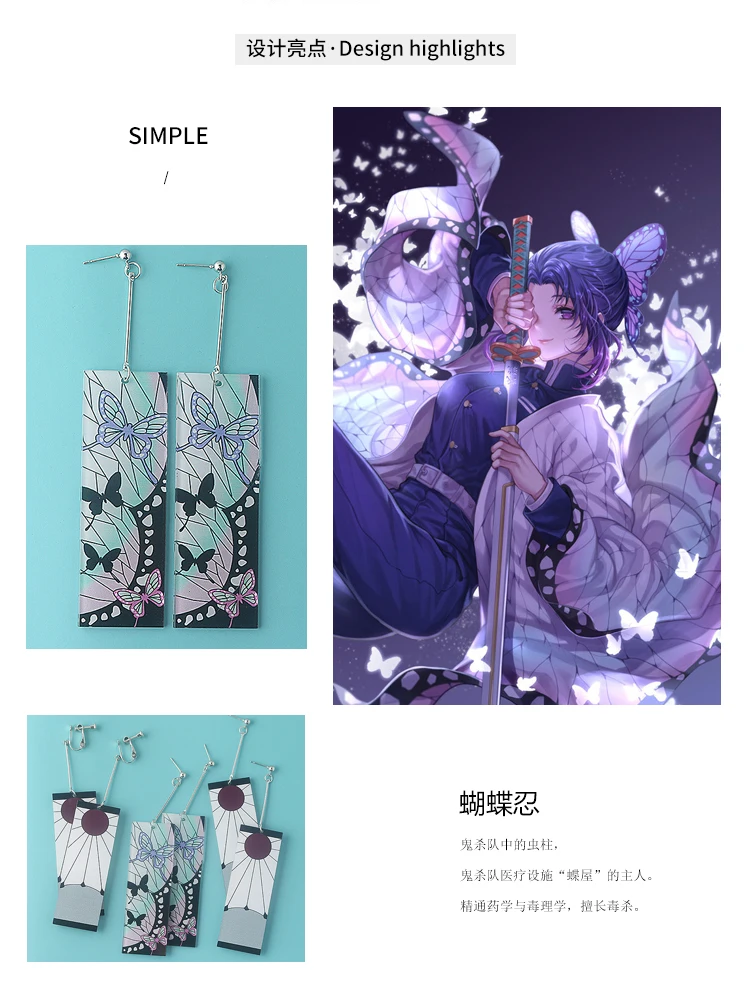 Женские акриловые серьги-подвески, клинок призрака, бабочки, клинок киметсу, клинок призрака, для косплея
