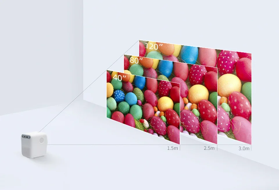 1,5-3,0 м может проектировать экран 40-120 дюймов. Данные измерены вручную, могут быть погрешности, пожалуйста, обратите внимание на реальную ситуацию. Рекомендуется, чтобы максимальный размер проекции не превышал 100 дюймов.