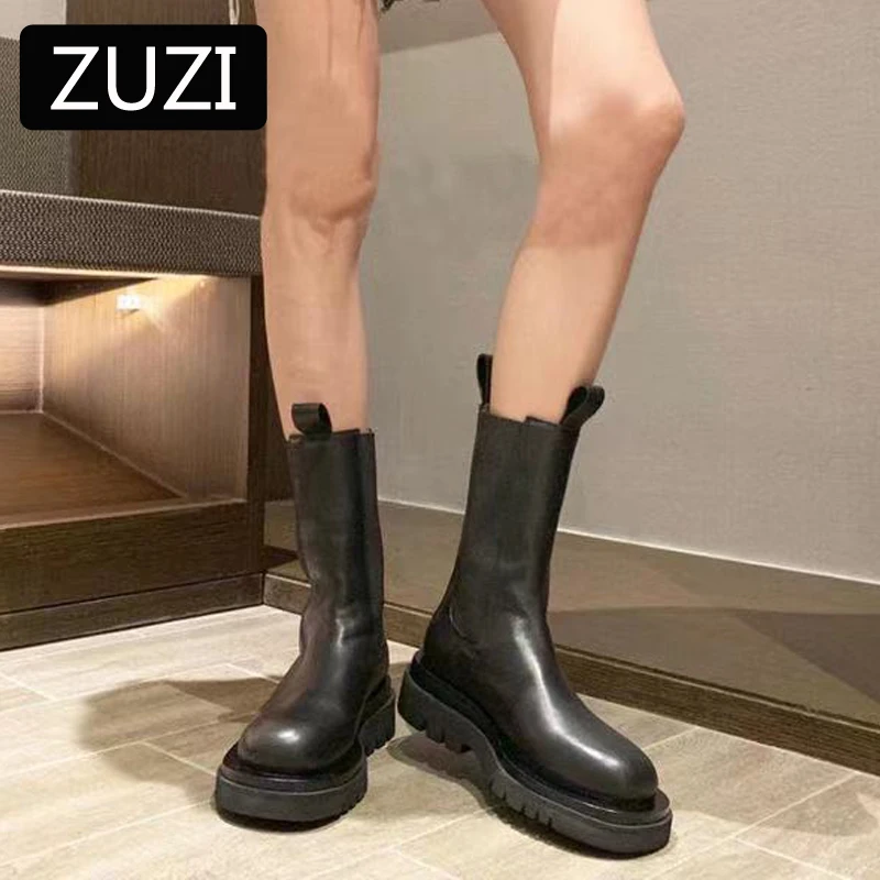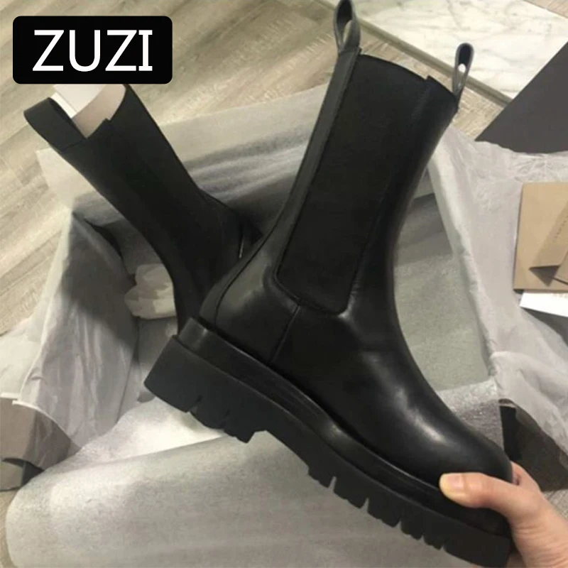 Новинка 2021, женские удлиненные сапоги ZUZI Martn на осень и зиму, бархатные короткие сапоги Челси на толстой подошве в британском стиле