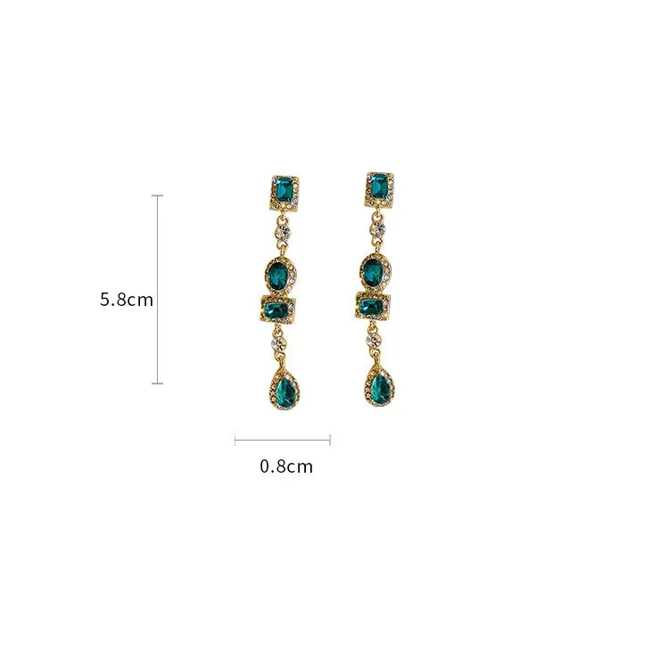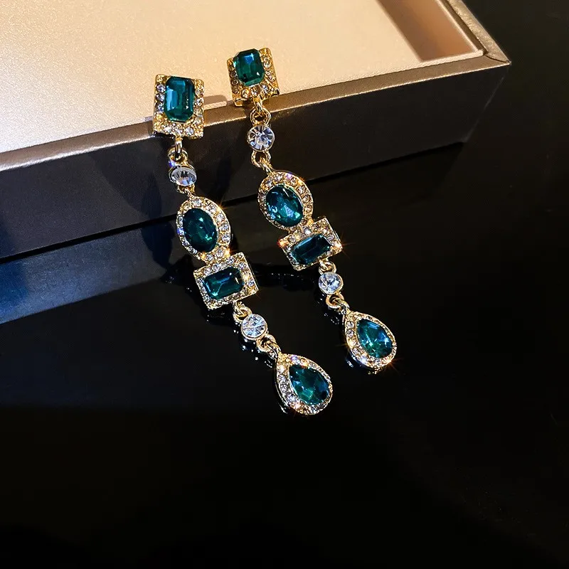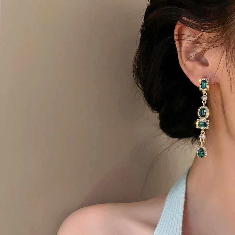 Новинка 2021, элегантные геометрические серьги-подвески с зелеными кристаллами в стиле Джокера, Длинные Модные металлические серьги для пожилых