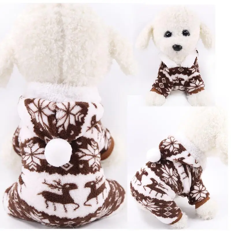 Мягкая теплая Женская одежда для собак, пижама, флисовое пальто для маленьких щенков, женская одежда с капюшоном, Рождественская одежда