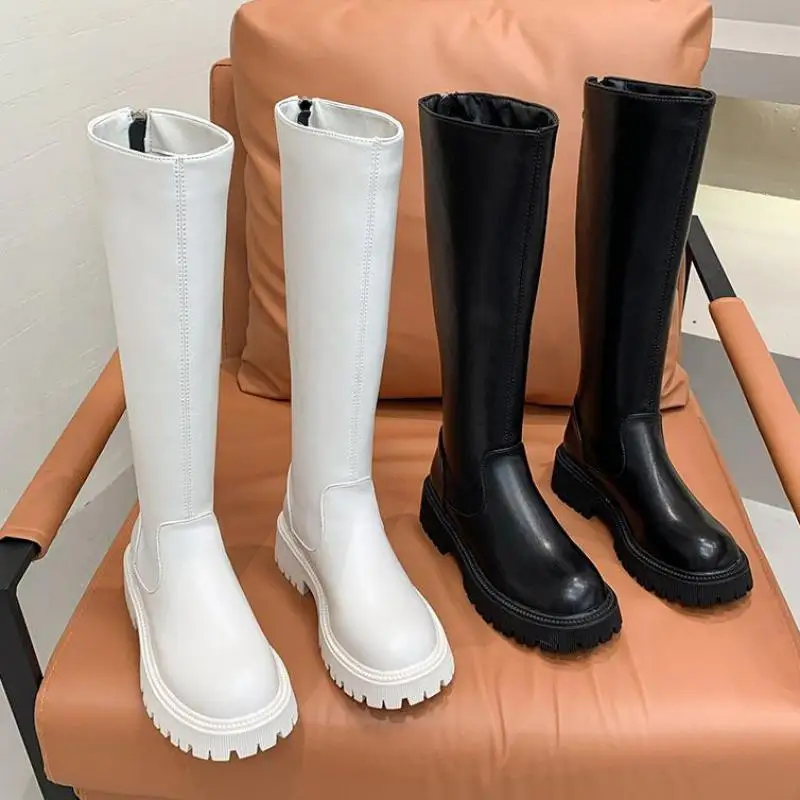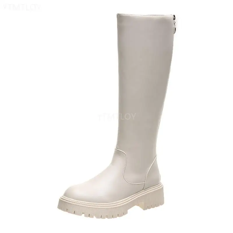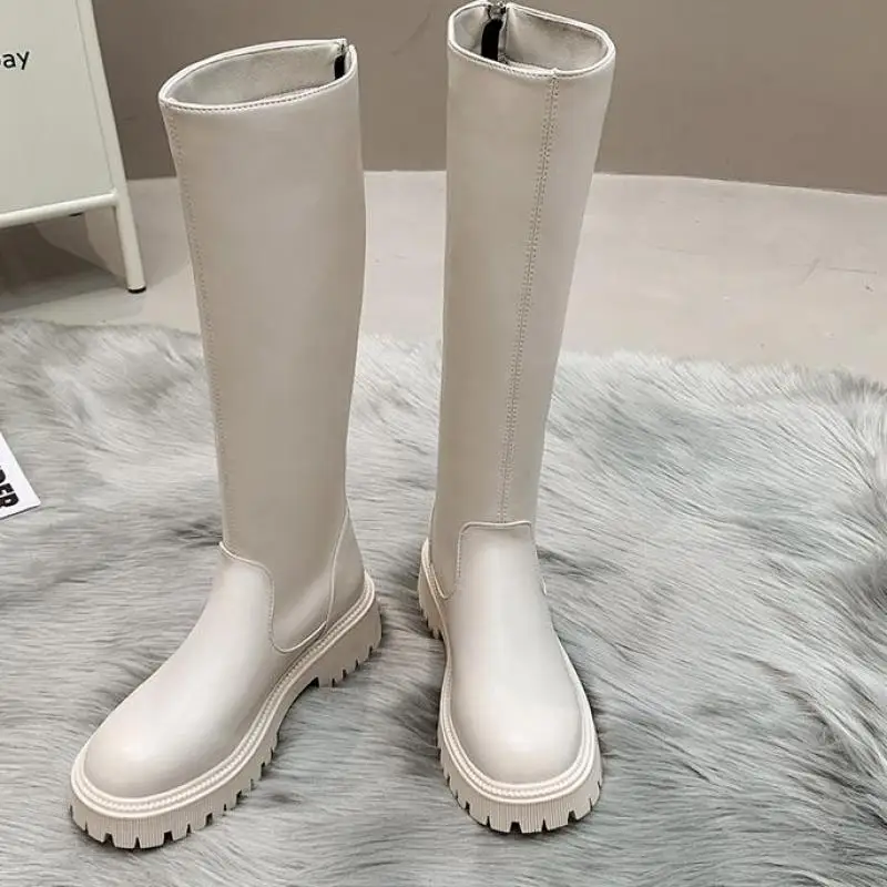 Женские кожаные сапоги до колена на платформе, осенне-зимние сапоги...