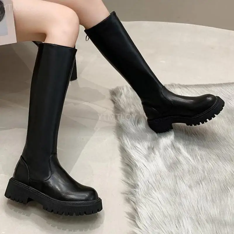 Женские сапоги, женская обувь, осенняя пикантная роскошная дизайнерская зимняя обувь, кожаная черная обувь Ytmtloy до колена, женские сапоги