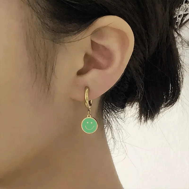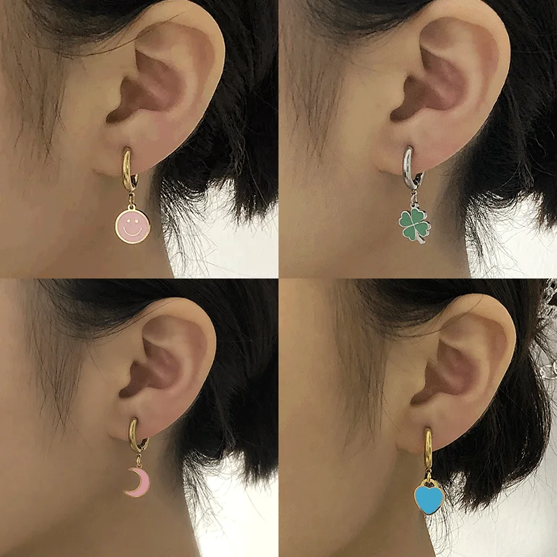 Серьги-кольца из нержавеющей стали женские, цветные ювелирные украшения с подвеской в виде сердца и улыбки, Звезда Луна