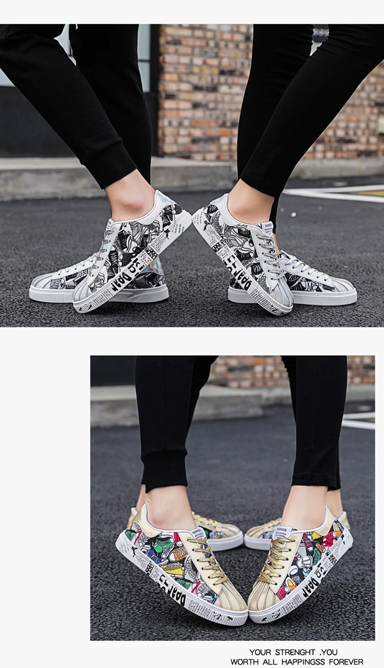 Кроссовки с принтом граффити для мужчин и женщин, Классическая обув...