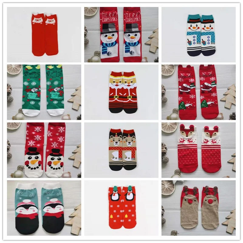 Рождественские носки, хлопковые, зимние, милые, с оленем, дедом морозом, снеговиком, с мультяшным принтом, рождественские подарки носки декоративные, 2021
