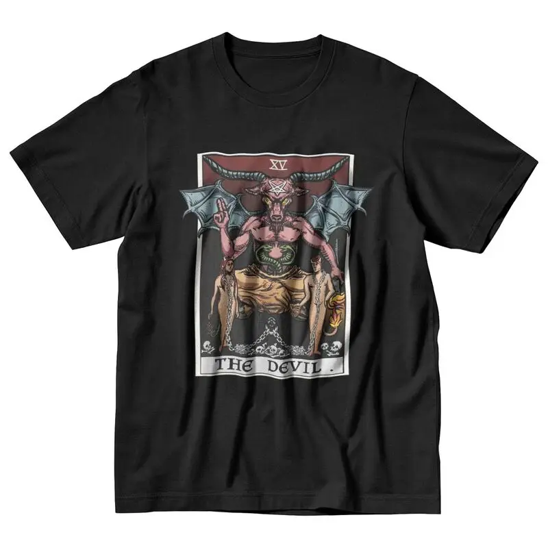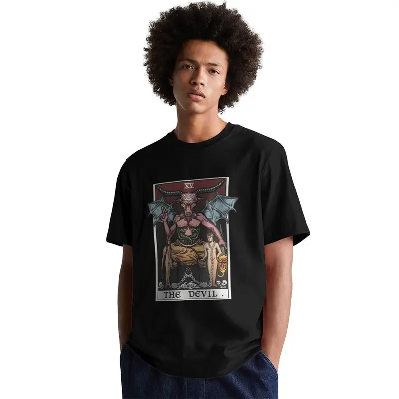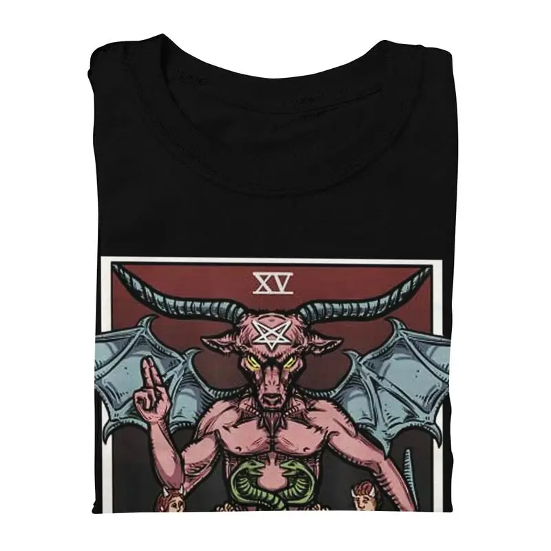 Футболка мужская с рисунком дьявола, таро, карточка, Baphomet, Готическая хлопковая, с коротким рукавом, с изображением демона, козы, зла, Сатаны