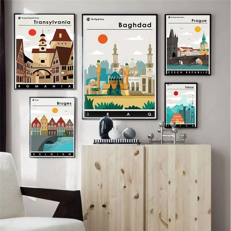 Скандинавские абстрактные Ретро плакаты, пейзаж, архитектура, масля...