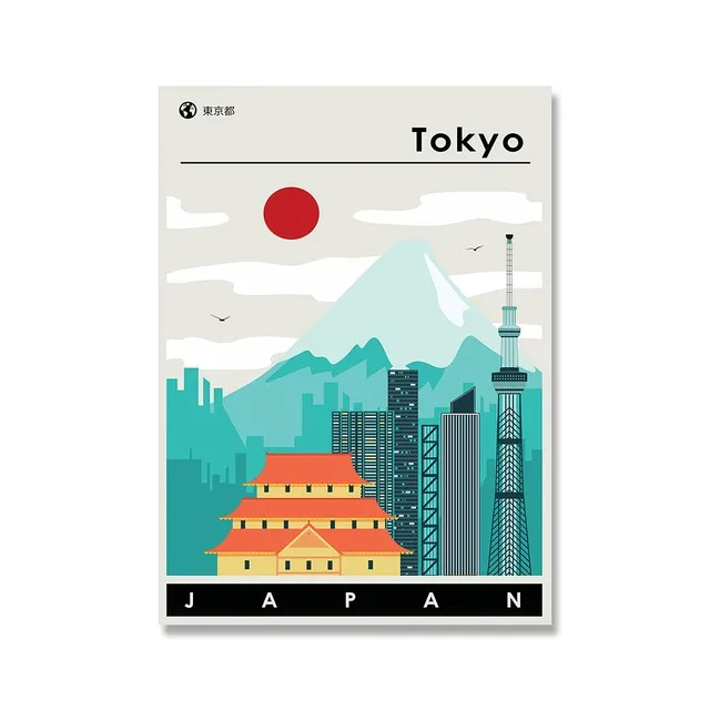 Ретро японское искусство минималистичный постер путешествия городск...