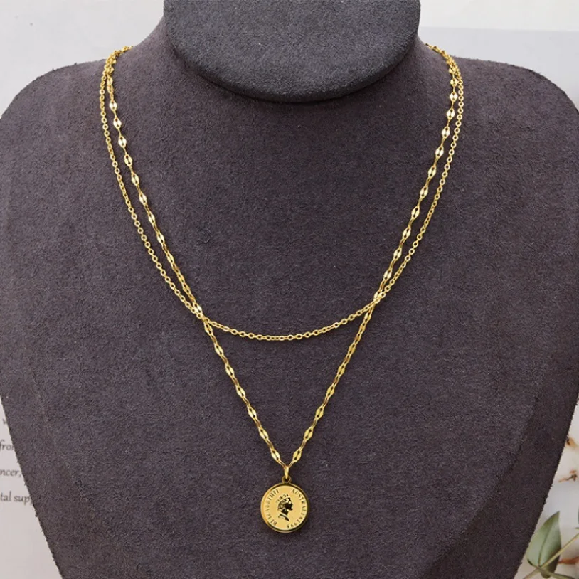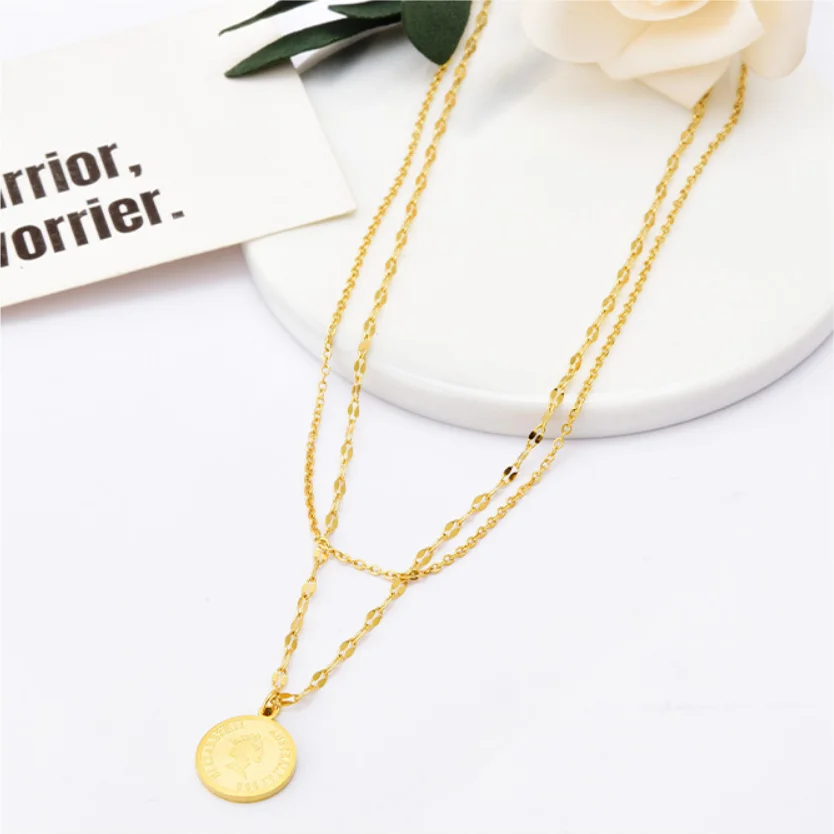 Цепочка-чокер женская из нержавеющей стали 316L, изящное винтажное Двухслойное ожерелье с подвесками в виде королевской монеты