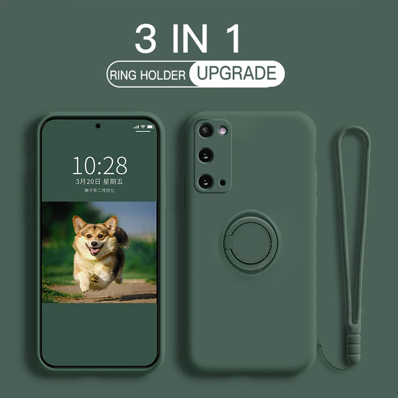Защитный чехол из жидкого силикона для Samsung A32 52 72 A22 A51 A71 A50 A70 A20 S21 S20 Ultra S10 S9 S8 plus, мягкий чехол с кольцом-подставкой