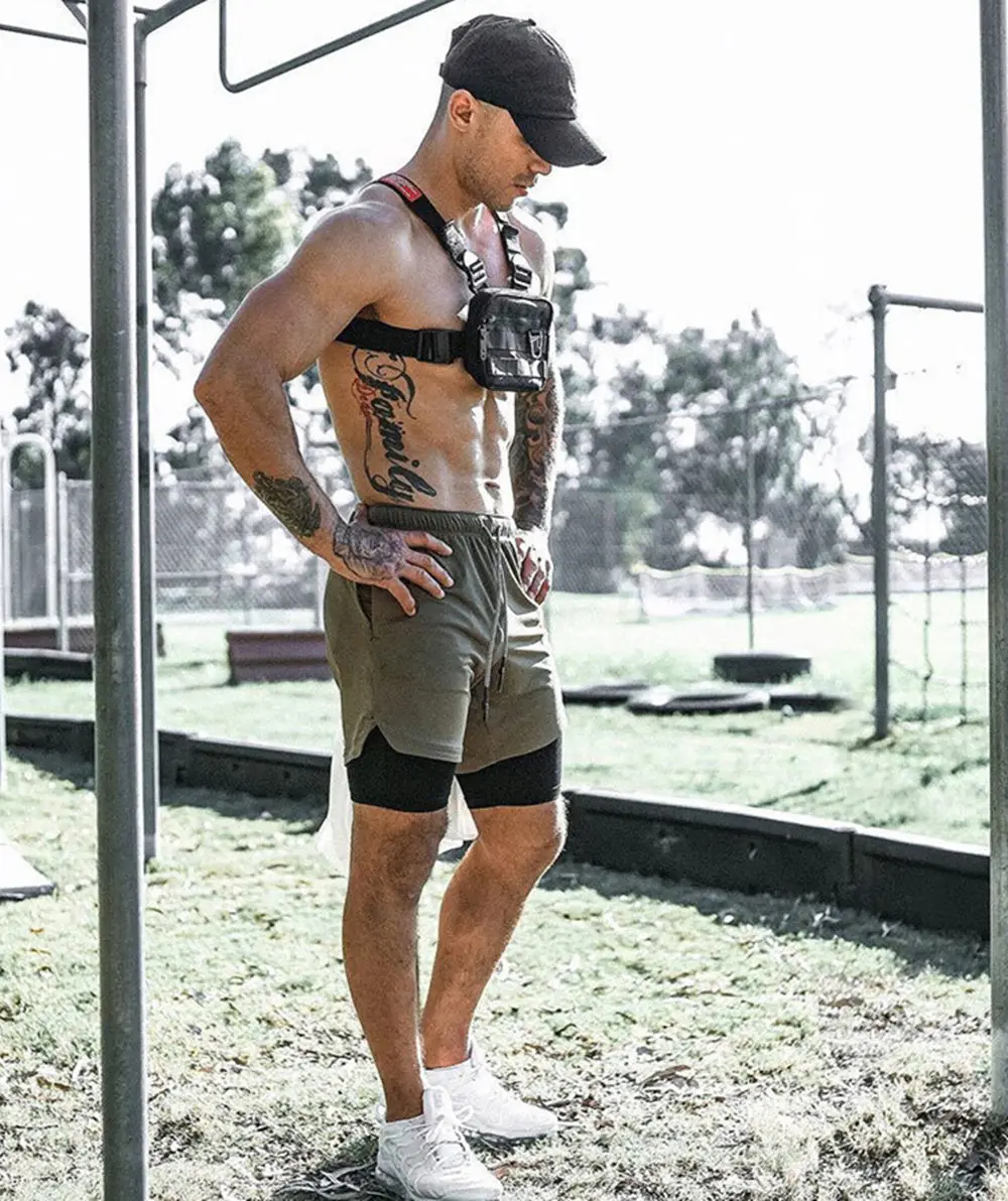 Шорты мужские спортивные быстросохнущие, 2 в 1, для бега