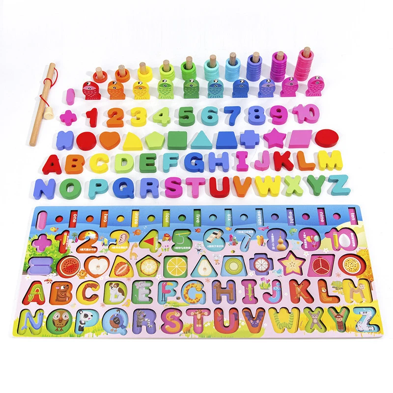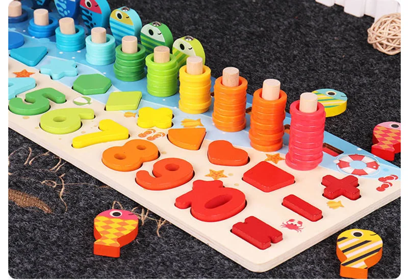 Строительный блок Монтессори для рыбалки, деревянная игрушка, Детская развивающая деревянная головоломка, Арифметические детские настольные игры, Цифровая форма