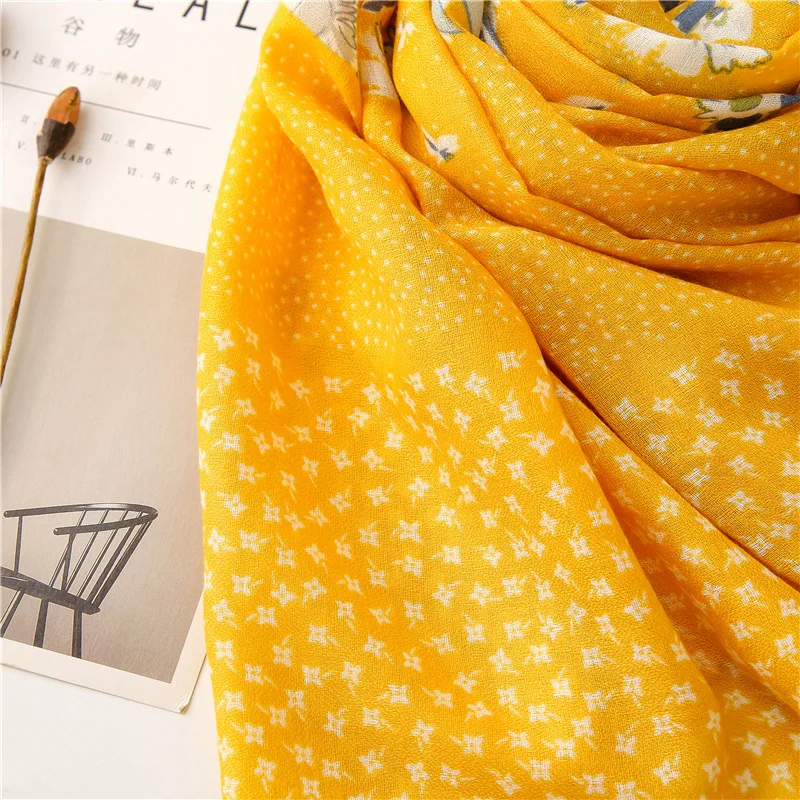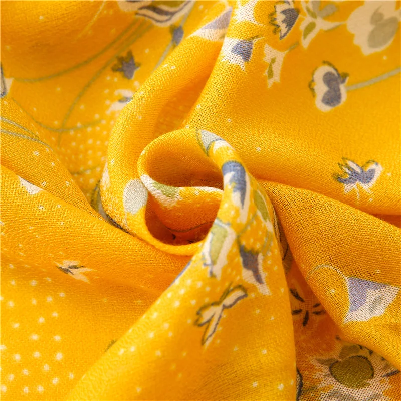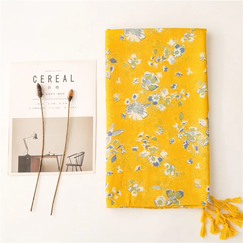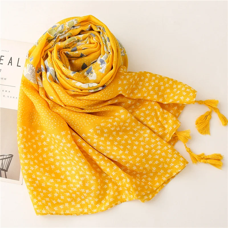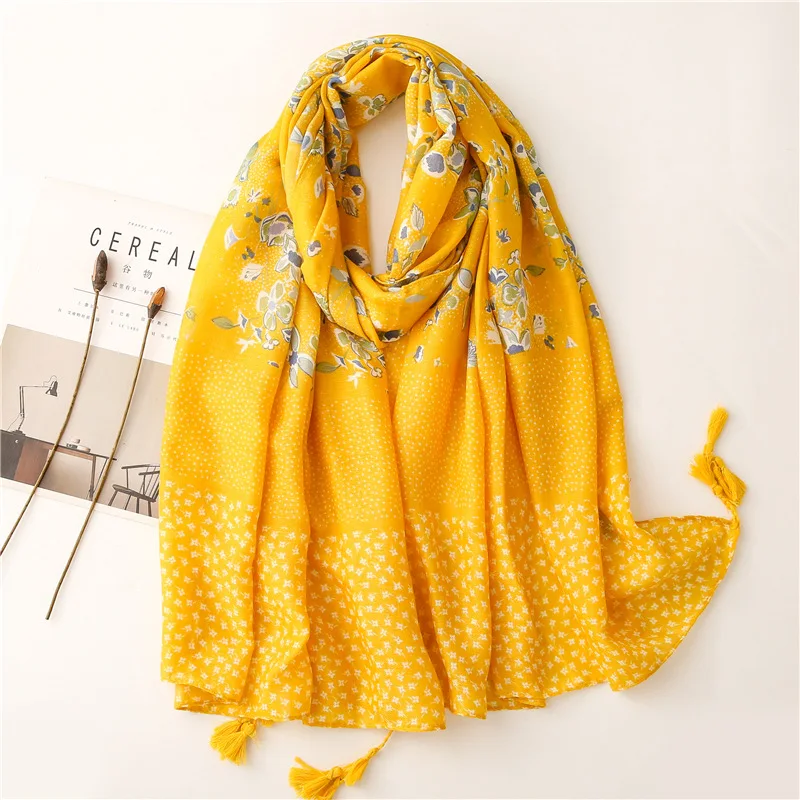 Шарф женский из вискозы, желтый, с цветочным рисунком, с бахромой, в стиле пэчворк, 2021