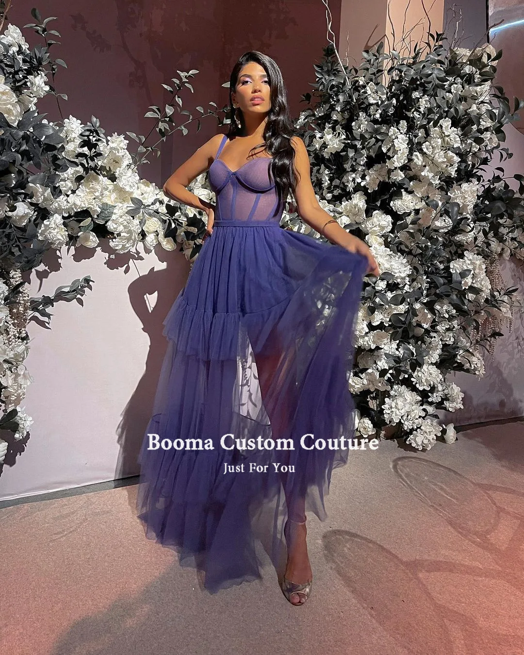 Платье-трапеция с оборками Booma, фиолетовое, Многоярусное, на тонких бретелях, фатиновые платья для выпускного вечера, 2021