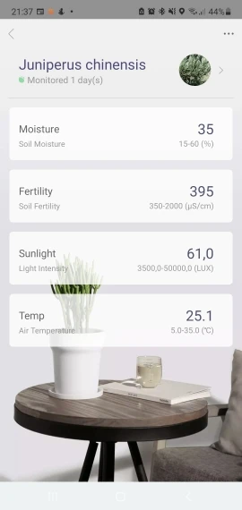 пришло в мягкой фирменной упаковке, все работает на регионе Китай, как мне и нужно для работы умного дома. Приложение лучше использовать Flower Care то что идёт независимо от Mihome, там есть англо-русский, в михоум все на китайском. Но их можно использовать одновременно. Привязывается к приложениям после того как вставили батарейку и вытащили пленку-пломбу из под нее, так как никаких кнопок на устройстве нет. Продавец положил ещё одну классную батарейку в подарок, спасибо отдельное! Хотя внутренняя была как новая - 3.3В. Но так как устройство изготовлено в 2016 году думаю эта мера оправдана. Немного был поврежден пластик на крышке, ковыряли ее видимо в спешке меняя батарейку, но терпимо. В общем очень нужная штука, чего их перестали производить непонятно.