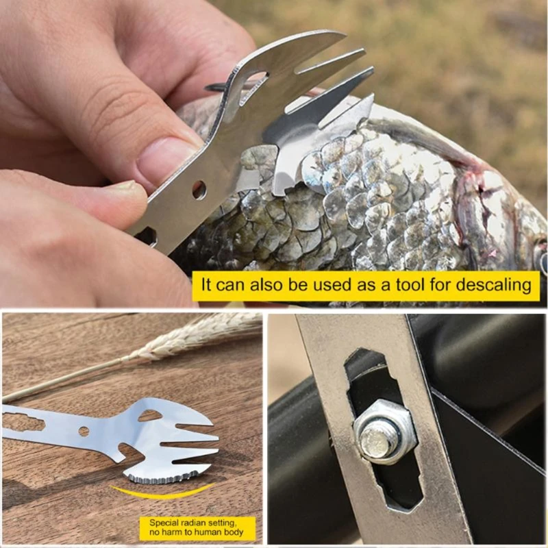 Многофункциональная вилка-Ложка для кемпинга и пикника, уличный рюкзак, портативная посуда, инструмент для повседневного использования, консервный нож, гарпун