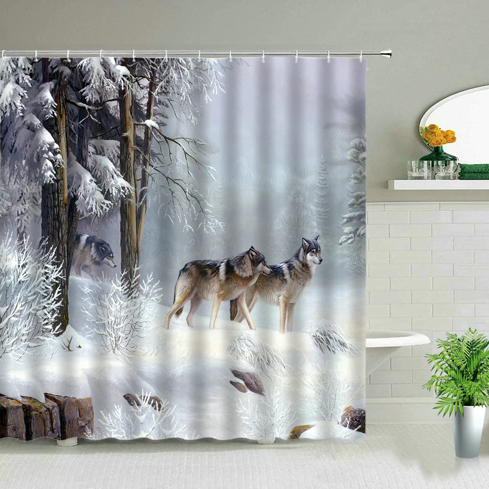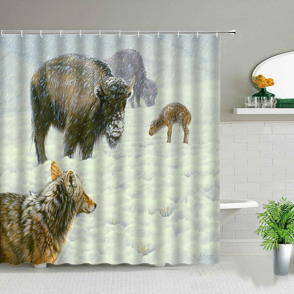 Шторы для душа с оленями и крючками, водонепроницаемые 3d занавески...