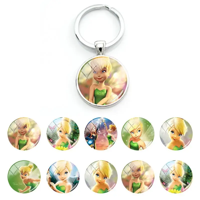 Disney Tinker Bell Fairy Tales брелоки, сумка для ключей, брелок для детей, девочек, стеклянный кабошон для кулона брелок ювелирный DSN608
