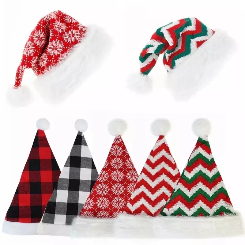 Модные рождественские шапки для детей и взрослых, 1 шт., теплые вязаные плюшевые шапки, шапка Санта Клауса для дома, рождевечерние, новогодние украшения