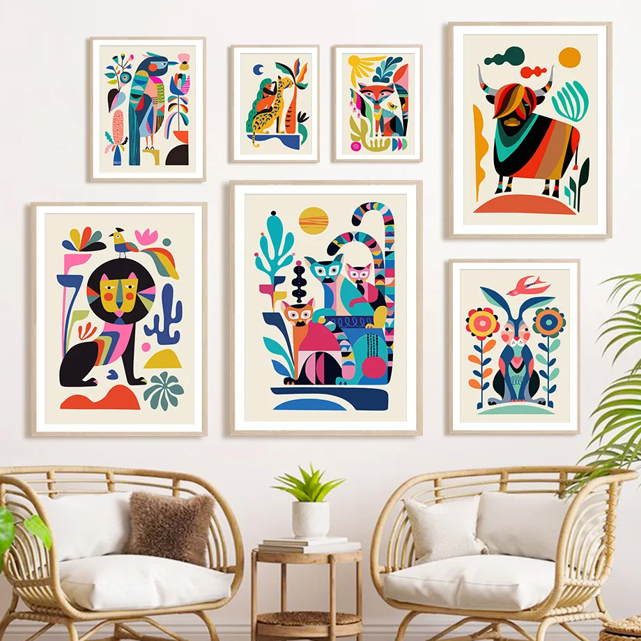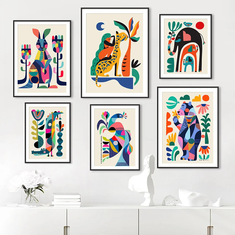 Lemur корова Павлин Лев Гепард Медведь Кролик лиса настенная живопись на холсте скандинавские постеры и принты настенные картины декор детской комнаты