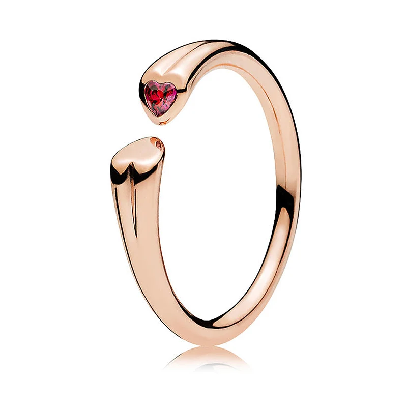 Открытые Кольца в виде двух сердец с кристаллом, серебро 925 пробы