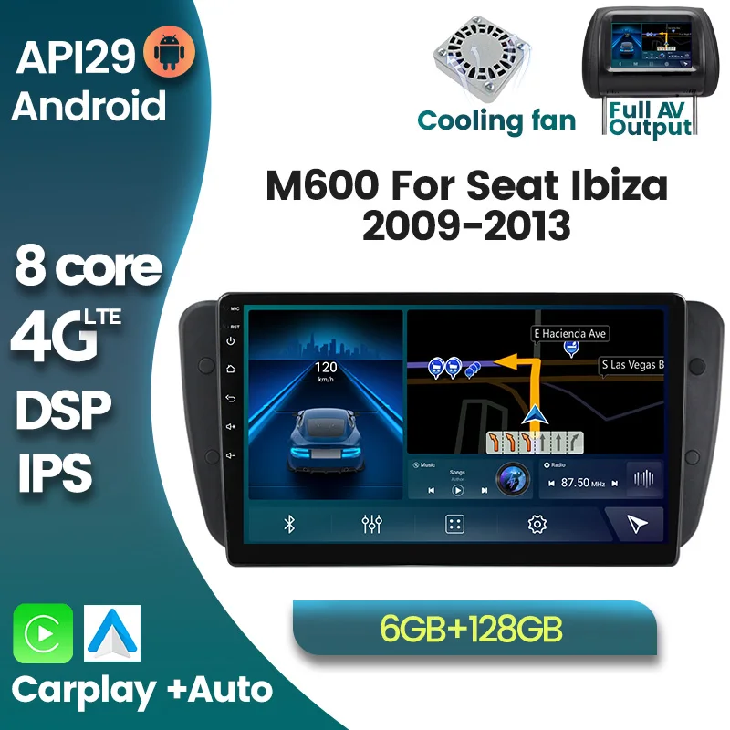 Мультимедийный видеоплеер на Android 10, 6 ГБ + 128 ГБ, 4G, Wi-Fi, DSP, для Seat Ibiza 2009-2013, GPS-навигация, Авторадио, Carplay
