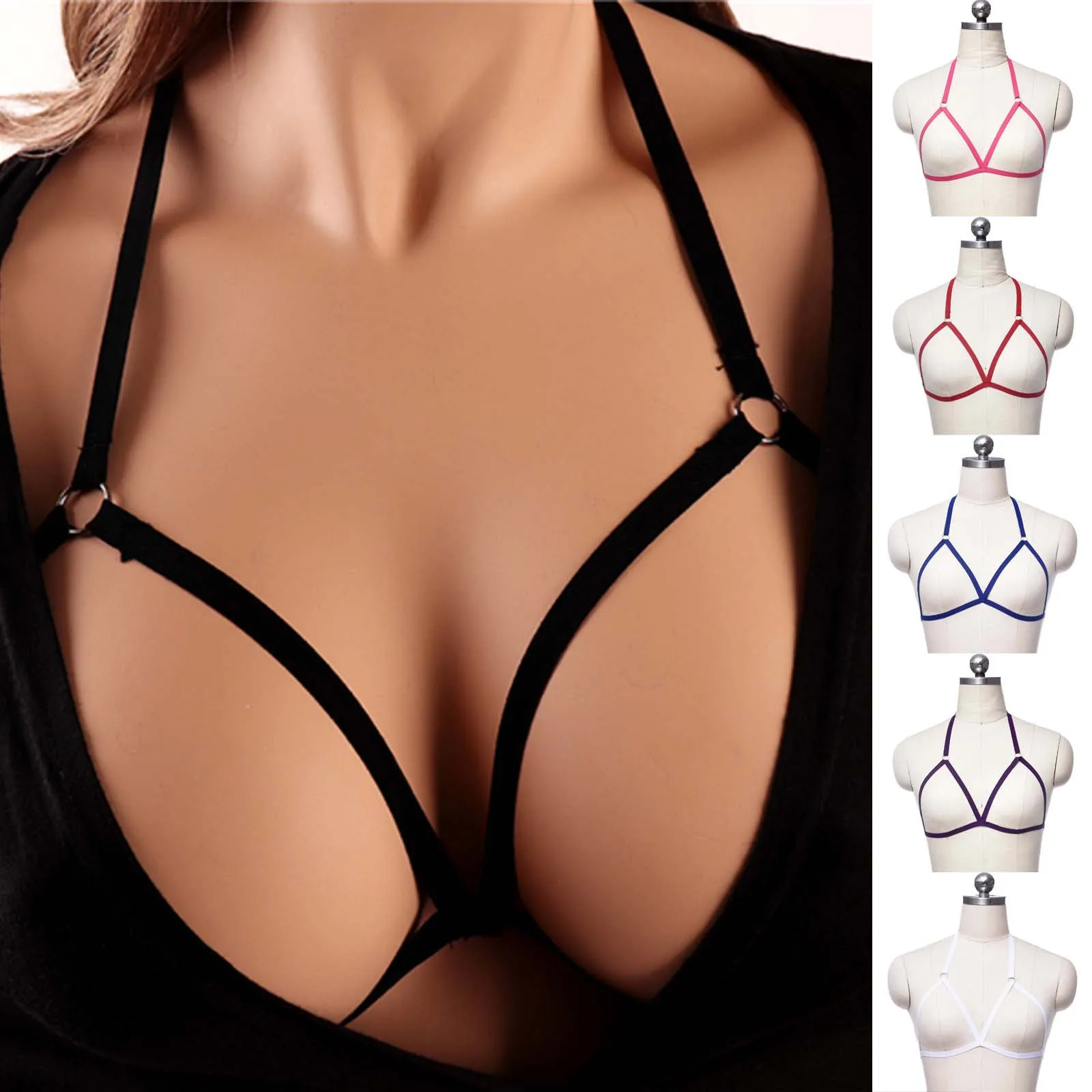 Женский бюстгальтер-портупея в стиле Харадзюку, черный сексуальный ...