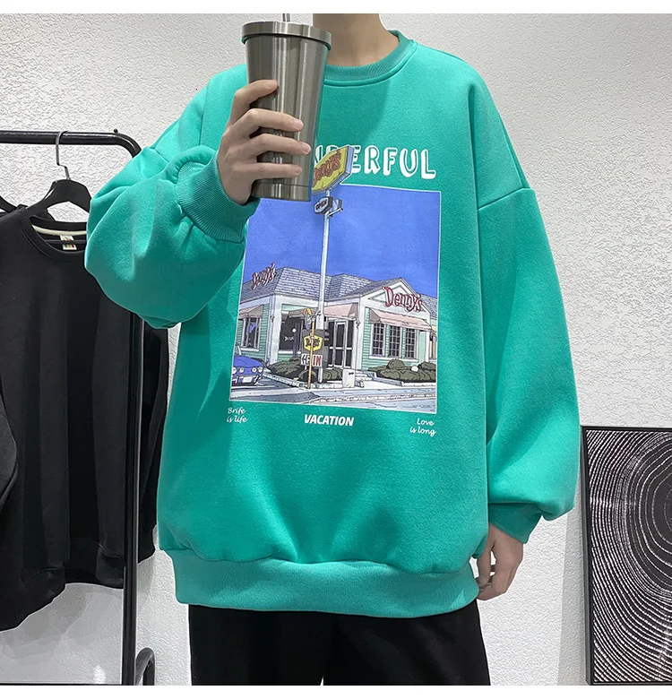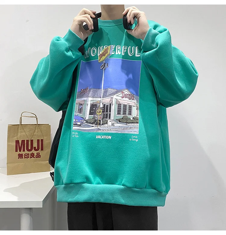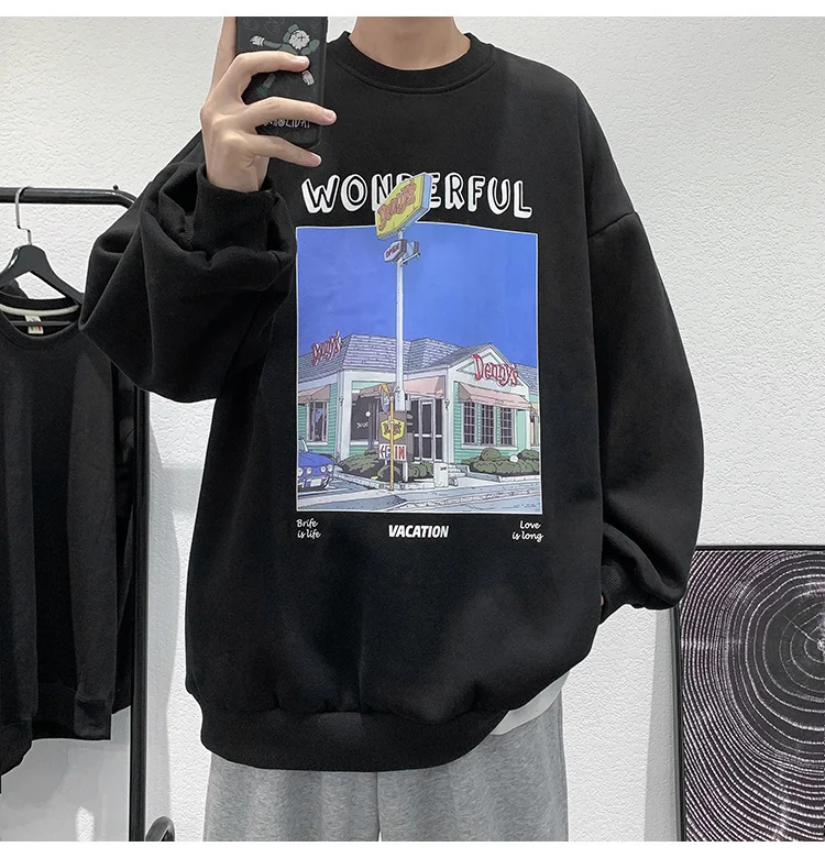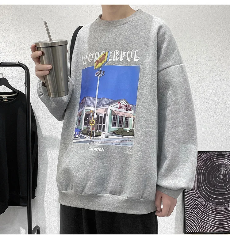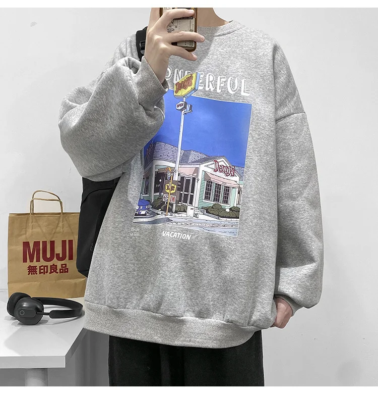 Модные мужские пуловеры с принтом в стиле Харадзюку, уличная одежда, повседневные мужские толстовки с круглым вырезом, свободная винтажная толстовка, мужская одежда оверсайз