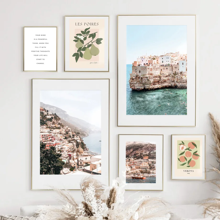 Постеры и картины в скандинавском стиле с рисунком побережья Амальф...