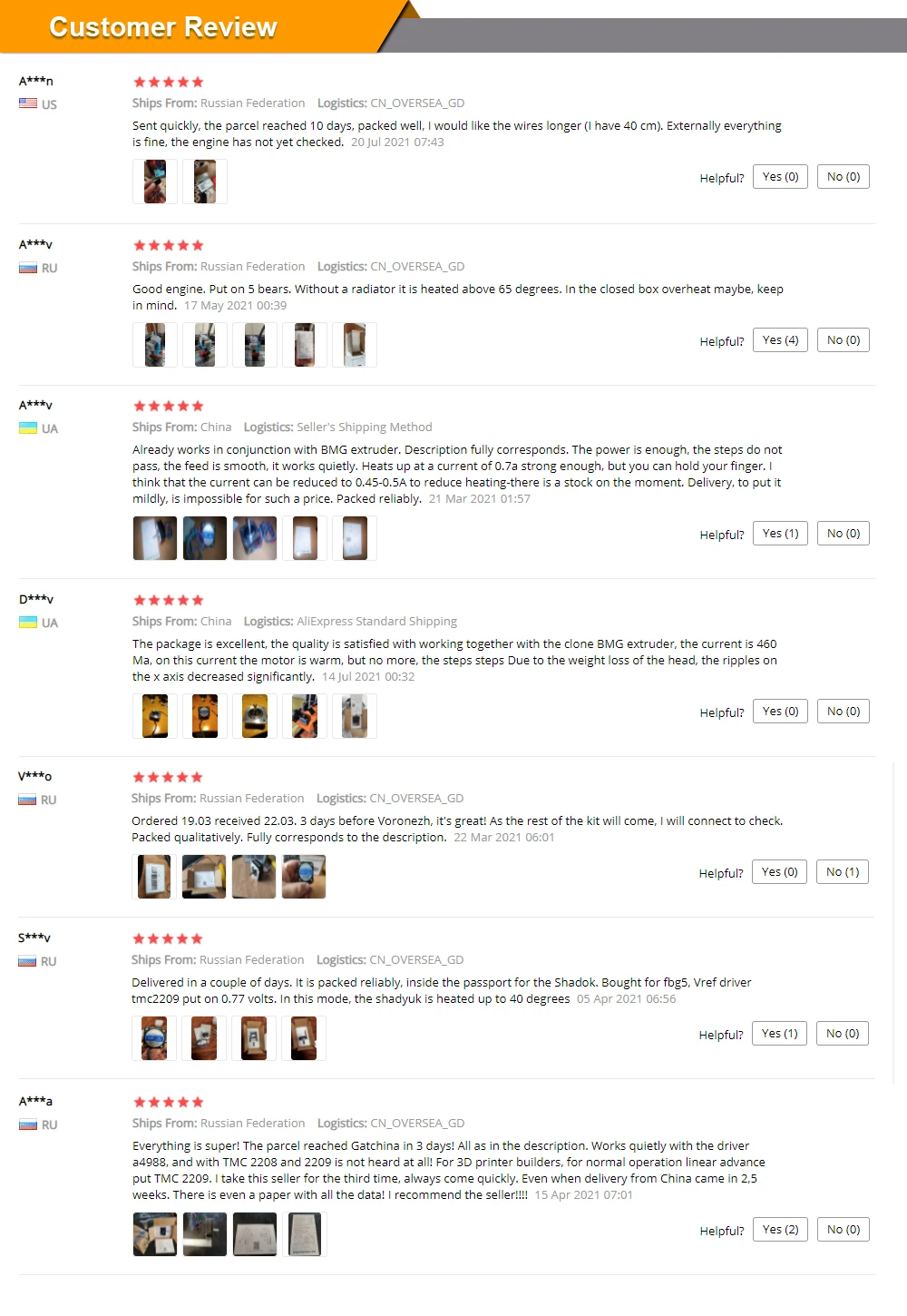 Очень быстрая доставка. Кажется, что у нас очень хорошее качество. Неподключенный двигатель движется плавно. Хорошо, чтобы присоединиться к питателю с двумя драйверами в моем принтере.