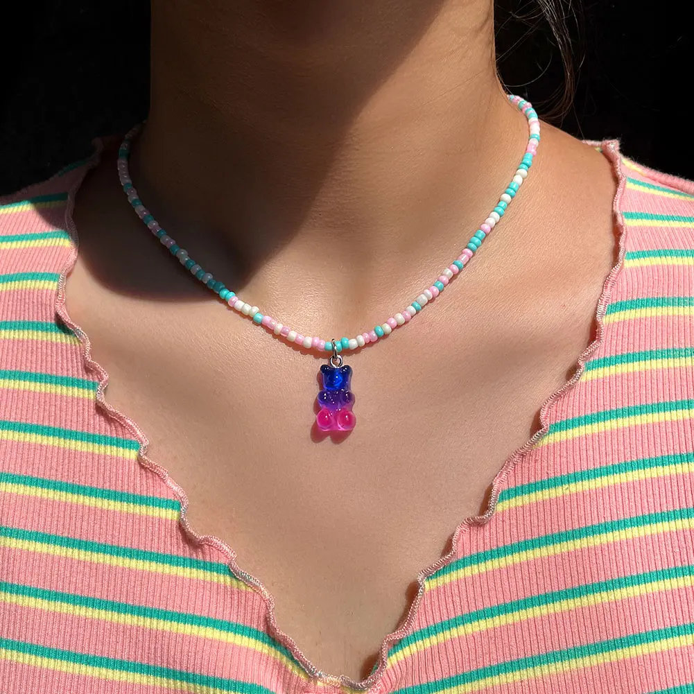 Ожерелье с радужными бусинами для женщин, милое мультяшное градиентное ожерелье-чокер в стиле бохо для девушек ручной работы, ювелирное изделие на Рождество в подарок, конфеты, Мишка-жемчуг, Y2K