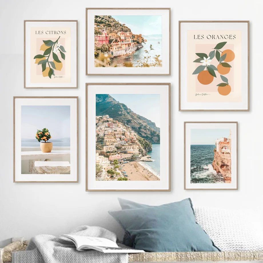 Постеры и картины в скандинавском стиле с рисунком побережья Амальф...