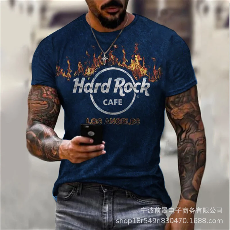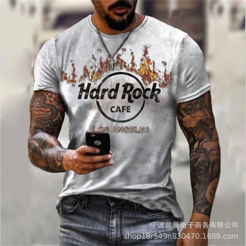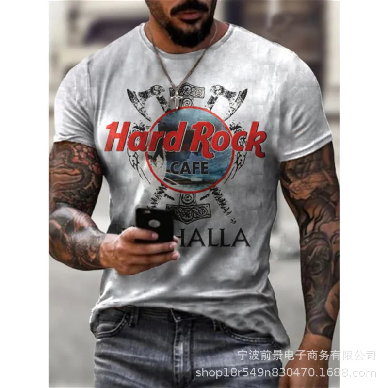 Модная Повседневная Большая мужская футболка с коротким рукавом и принтом хард-рок
