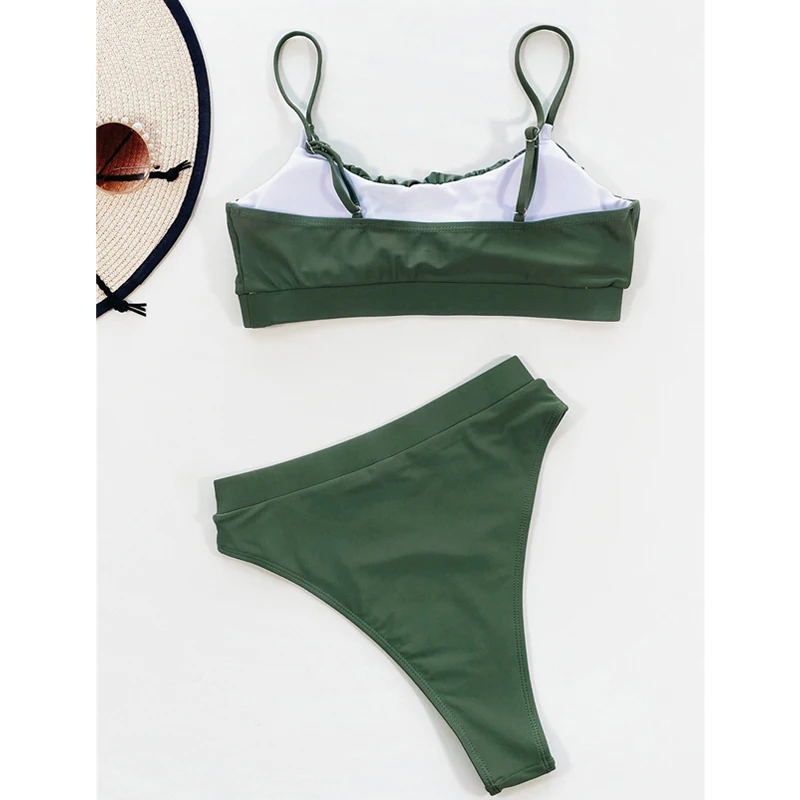Новый сексуальный купальник-бикини с рюшами и высокой талией, Женский однотонный купальник, лето 2021, женский пляжный купальник, комплект бикини с высоким вырезом, купальные костюмы