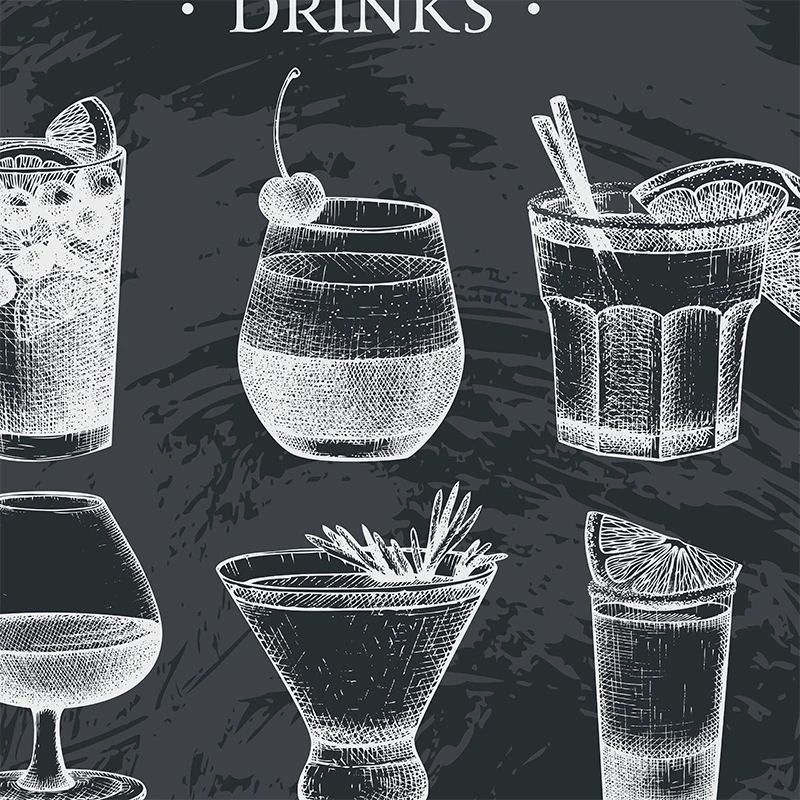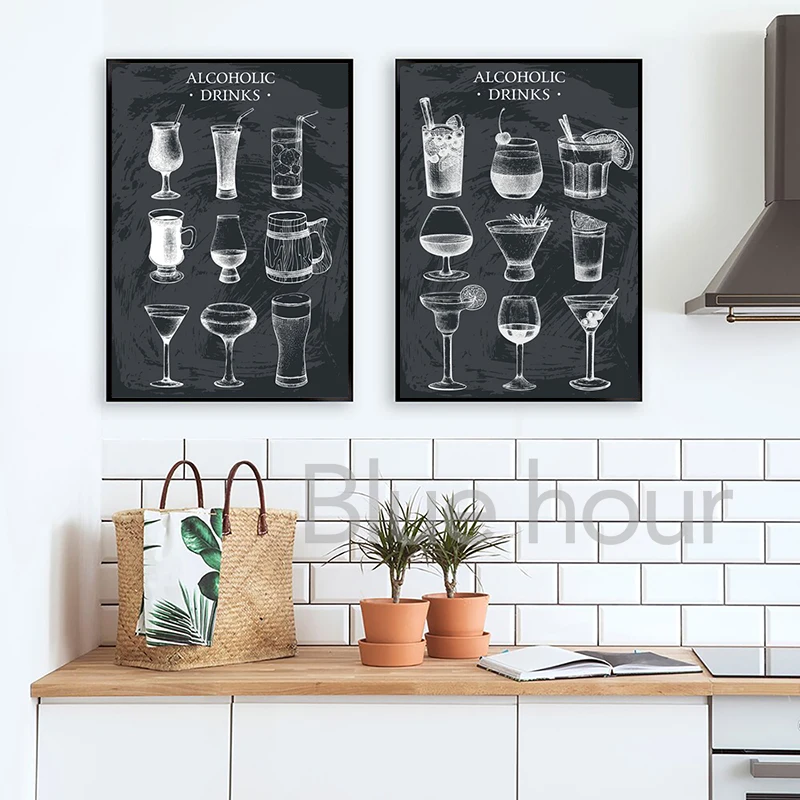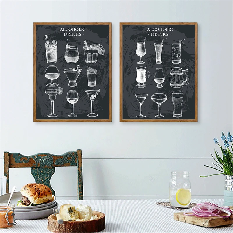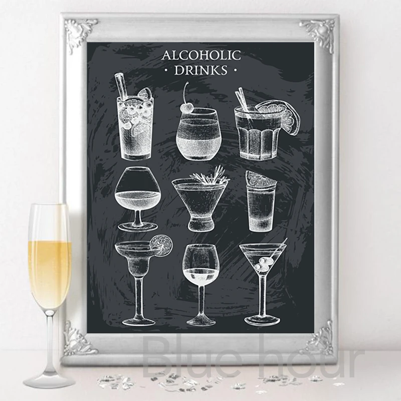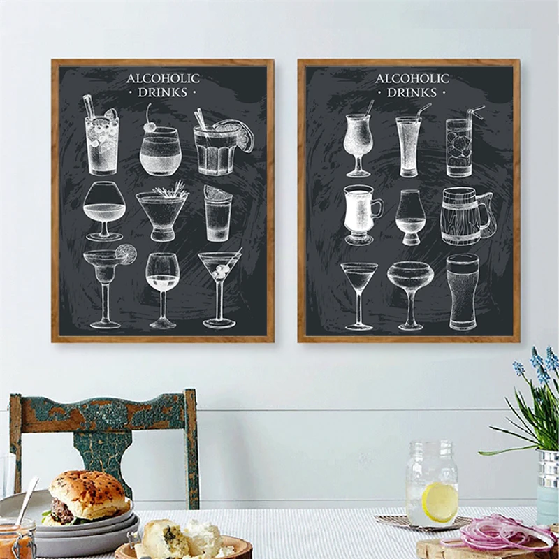 Винтажный рисунок для набросков спиртовых напитков, художественные принты, плакат для заметок мелом, украшение кухонной стены Bar, ресторан, меню, Картина на холсте