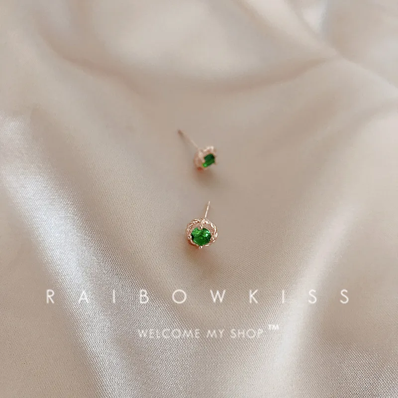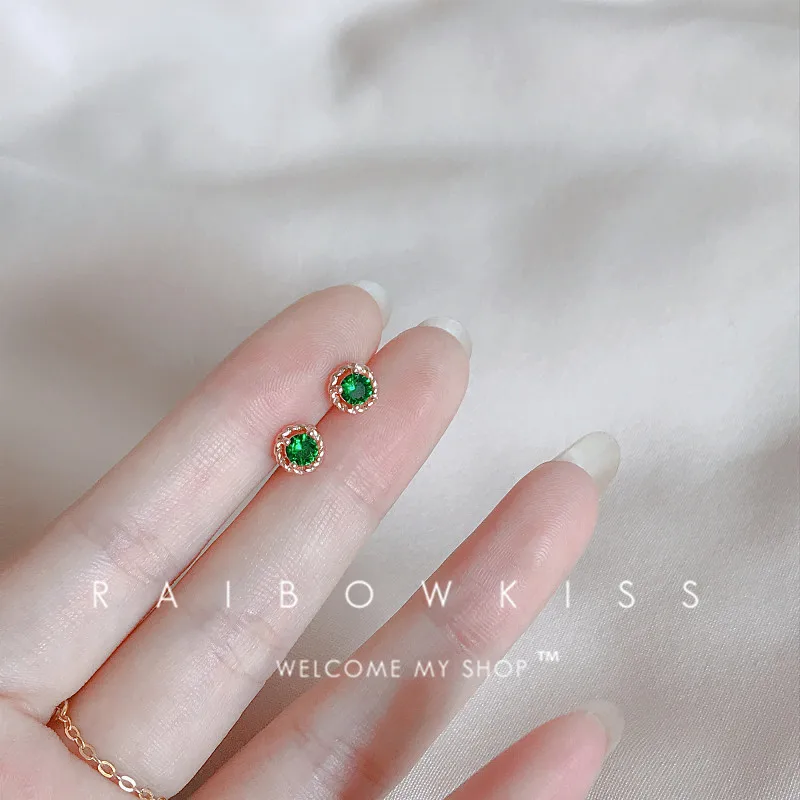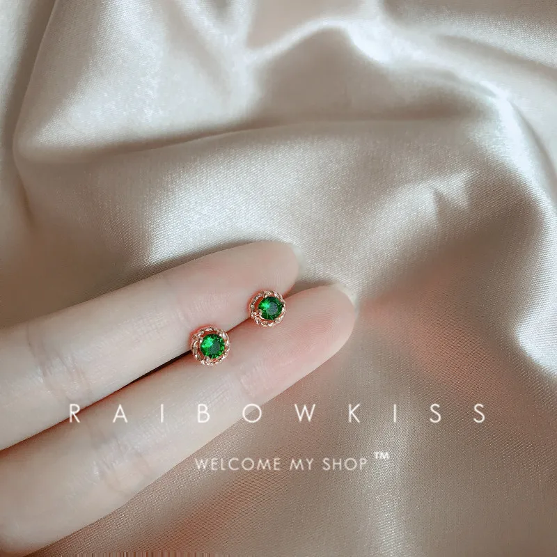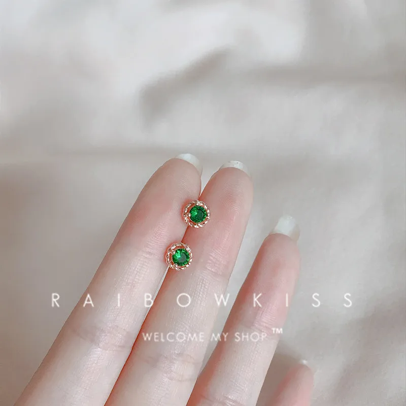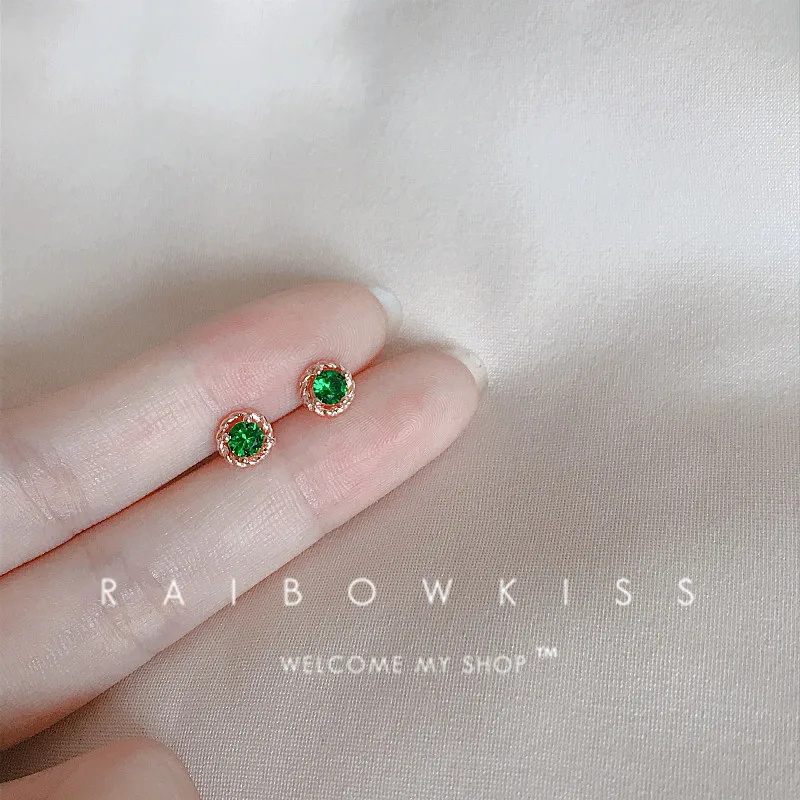 Женские серьги-гвоздики, винтажные круглые изумрудно-зеленые серьги с кристаллами из циркония, простые геометрические украшения в виде пеньковой веревки, 2021