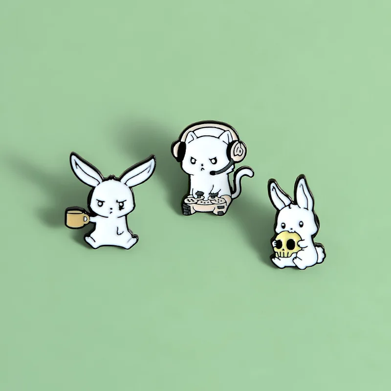 Мультяшные кролики эмалированная заколка на заказ броши кролик игра...