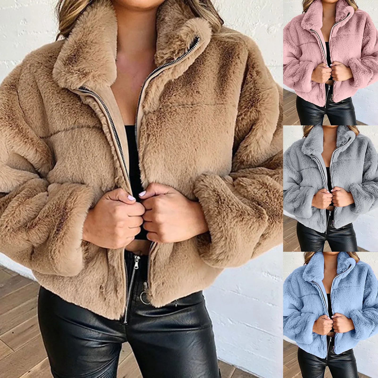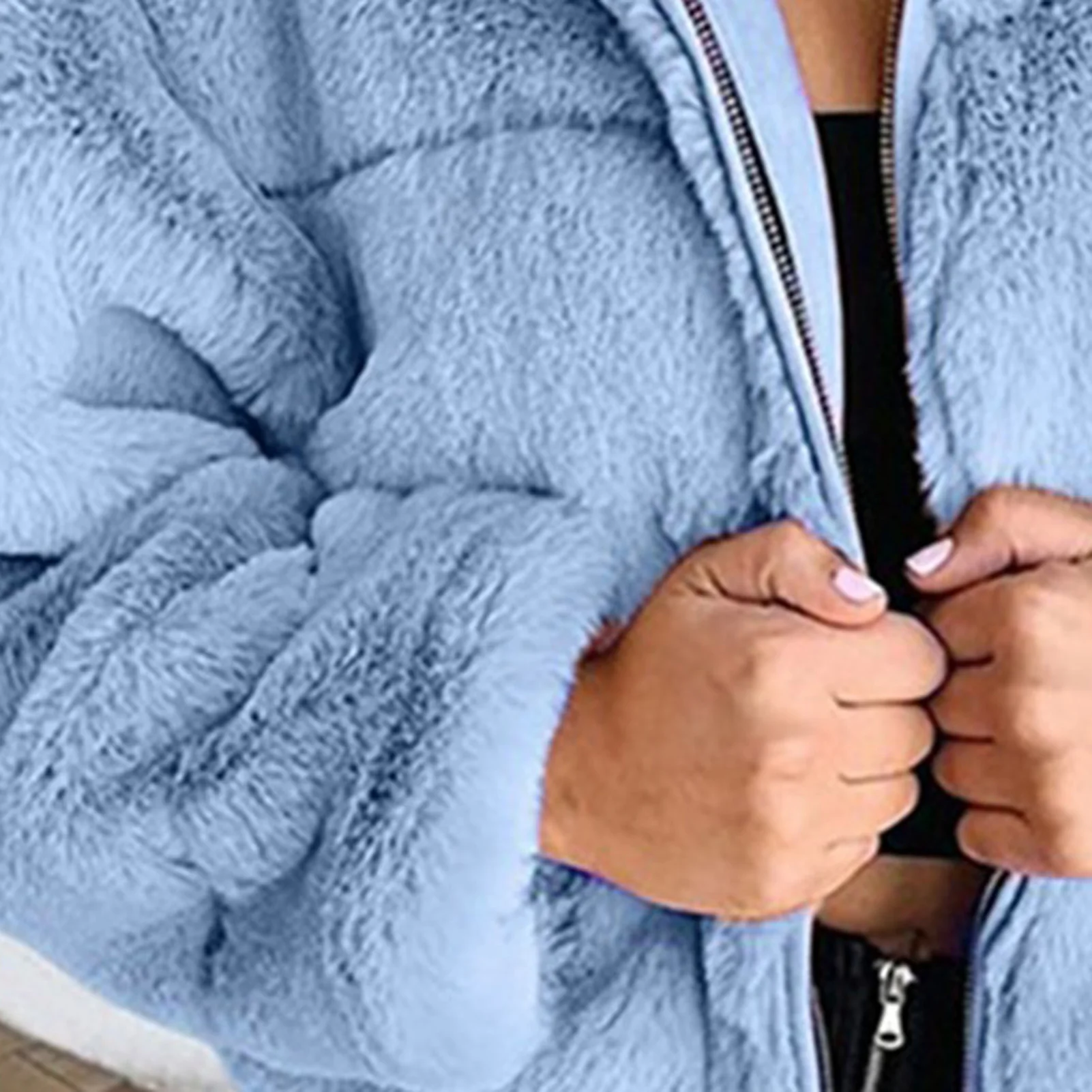 Женское пальто из искусственного меха с капюшоном, новое пальто оверсайз с высокой талией, женское приталенное пальто, зимние теплые плюшевые куртки, верхняя одежда
