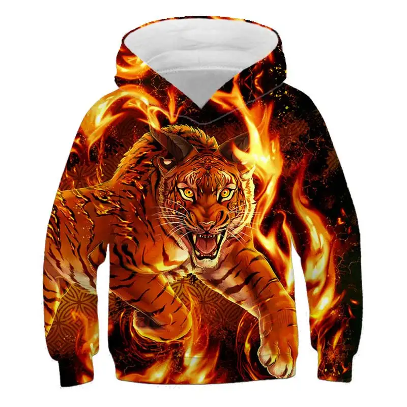 Толстовка с капюшоном для мальчиков, осень 2021, с 3D принтом тигра...
