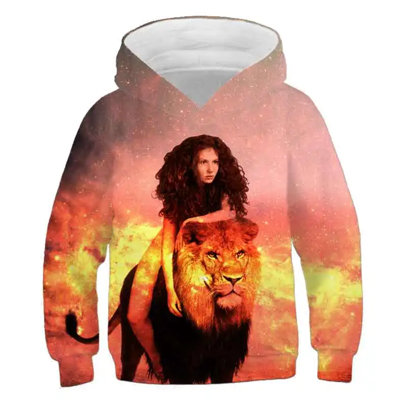 Толстовка для мальчиков и девочек в стиле Харадзюку С 3D изображением животных, детский пуловер с милым принтом тигра, кота, Льва, галактики, волка, Детская толстовка, свитшоты, топы