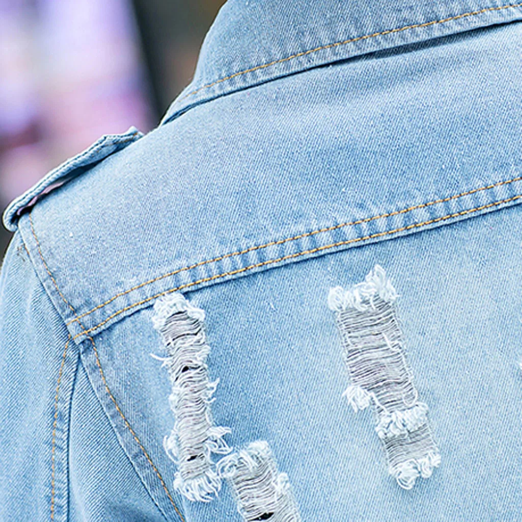 Джинсовая куртка-бойфренд в стиле Харадзюку, свободные женские джинсовые пальто с длинным рукавом, Женская длинная рваная джинсовая куртка с дырками на осень и зиму