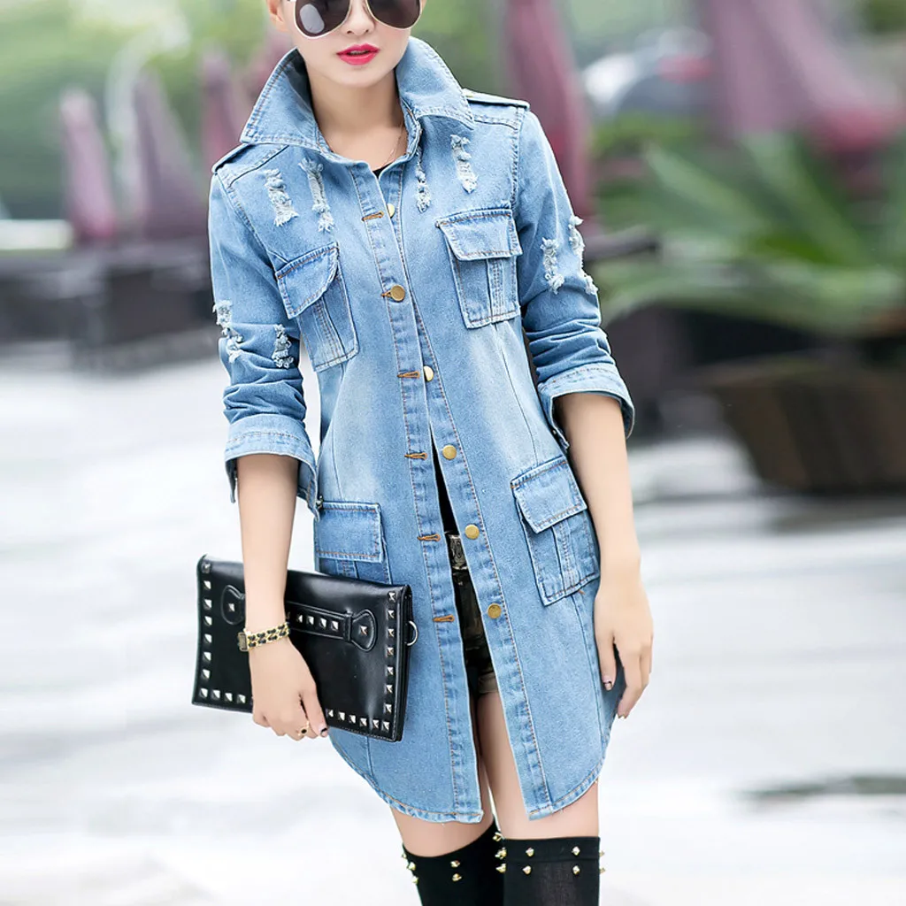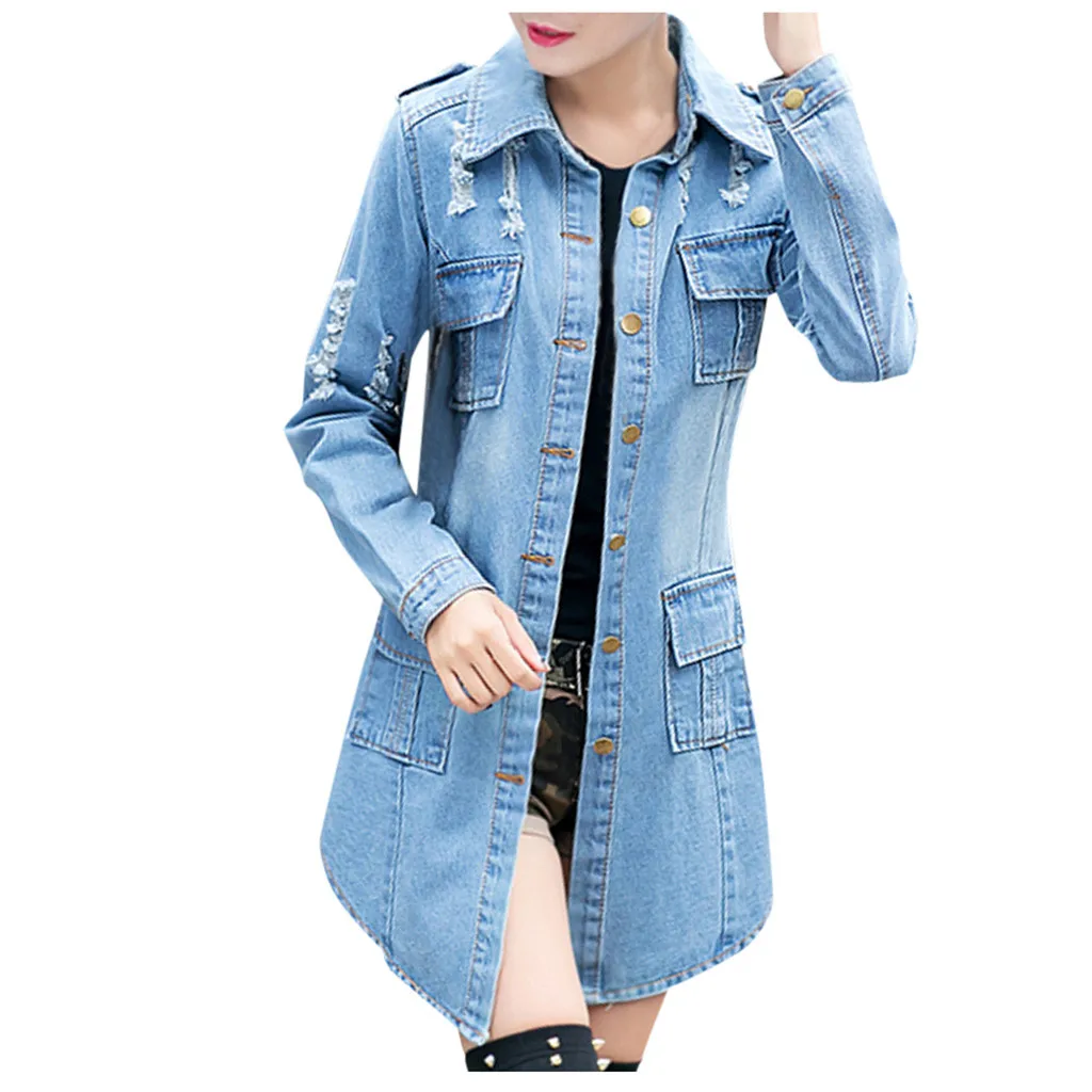 Женская джинсовая куртка бойфренда, Женская Байкерская Повседневная Длинная джинсовая куртка, пальто для улицы