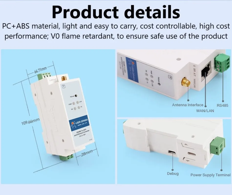 USR-DR404 Din-рейка Wi-Fi RS485 Серийный к TCPIP wifi Ethernet устр...