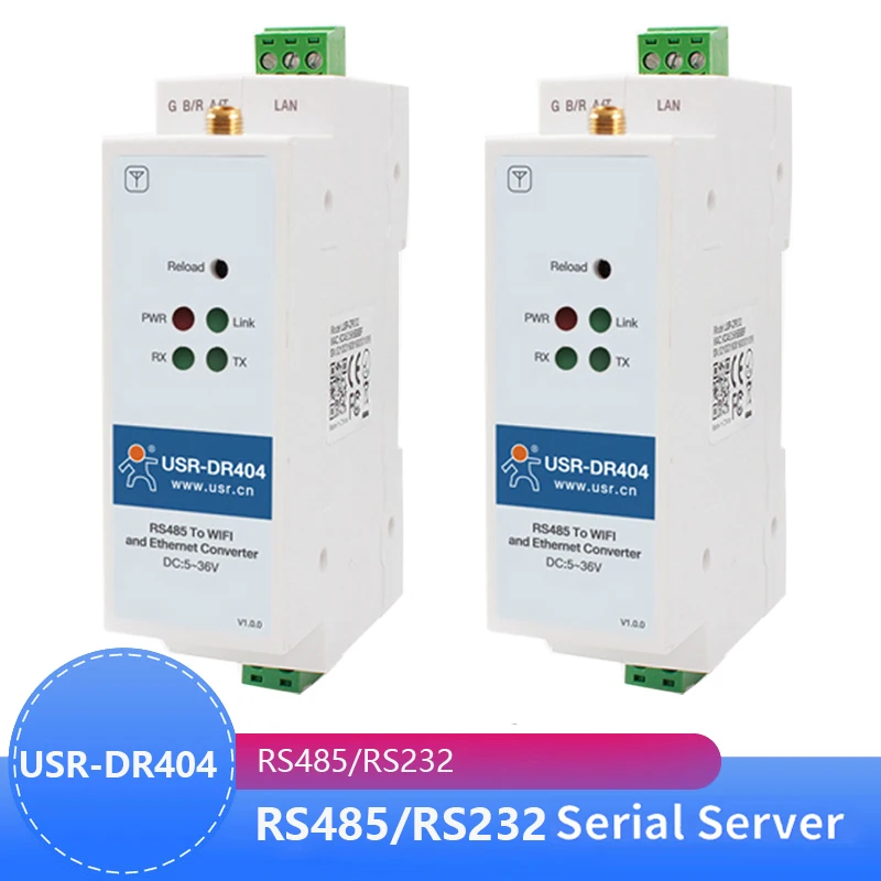 Преобразователь последовательного порта Wi-Fi RS485 на Din-рейку, USR-DR404, 2 шт.
